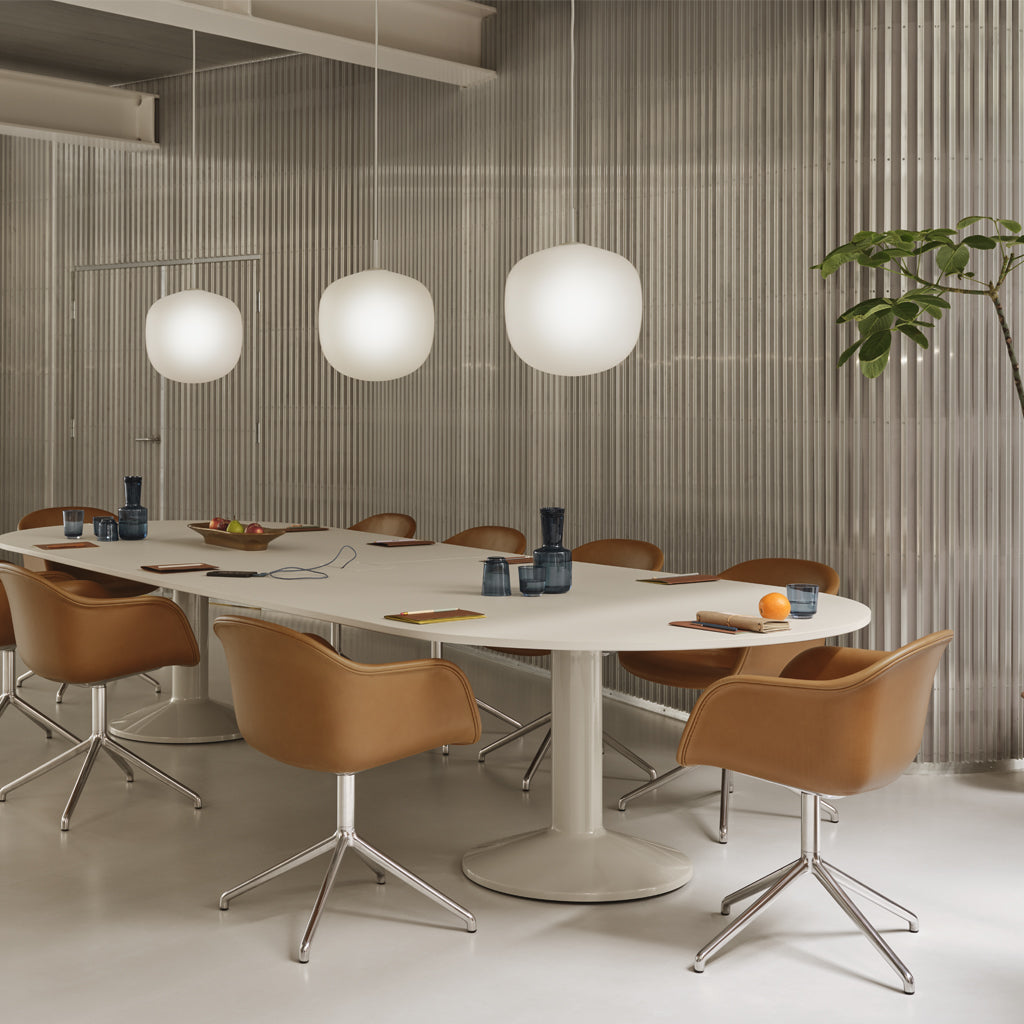 The Rime Pendant Lamp brings an elegant perspective to the glass pendant lamp through its semi-transparent glass that has been sandblasted for a refined expression. The design features a characteristic form, inspired by the shape of acorns, complemented by its powder-coated top-part, pendant tube and cord in a matching color for a subtle touch. The design is available in four colors across four sizes, allowing you to use the design on its own or in linear formations or playful clusters for a modern chandelier.