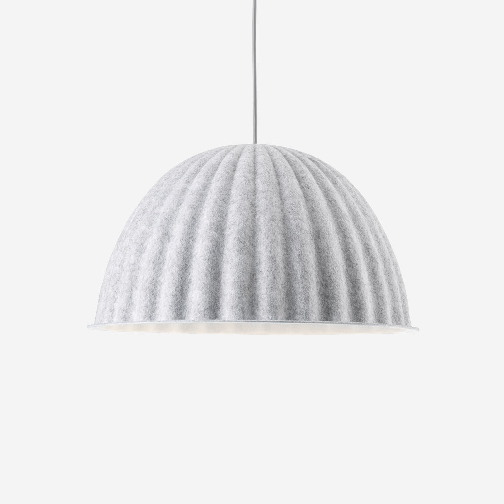 Made from recycled plastic felt, the Under The Bell Pendant is an eye-catching lamp brings a tactile and modern expression to any space. Whether hung over a dining table or in an office or lobby, it also absorbs noise and helps improve the room acoustics.