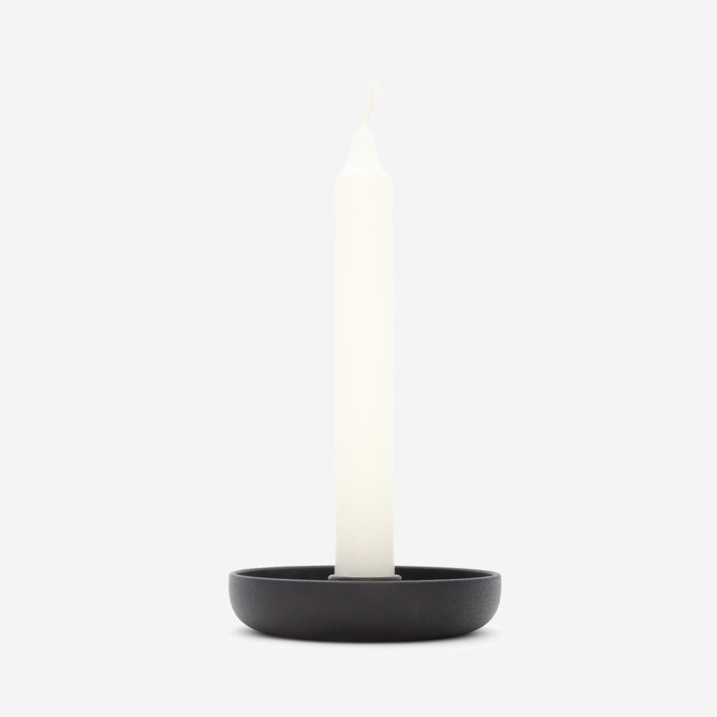 The No.30 Candle Holder utilises Zinc with a rough matte finish reminiscent of cast iron. Its saucer inspired shape is easy to handle and forms a trough for collecting any melted wax. There are two versions, one suitable for a standard candle and one for a tea light candle. Whether holding a lit candle, or just on display, the candle holder adds something quietly special to any scene.
