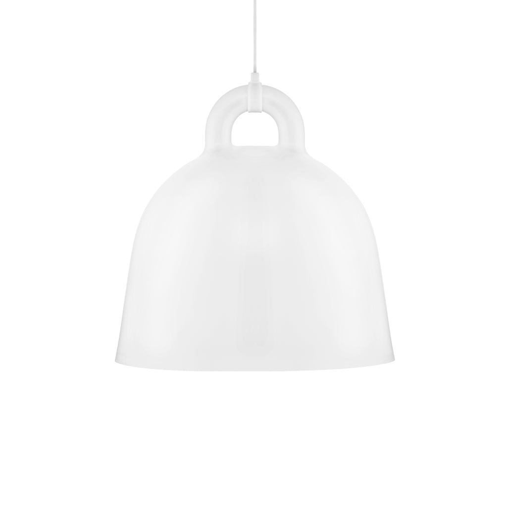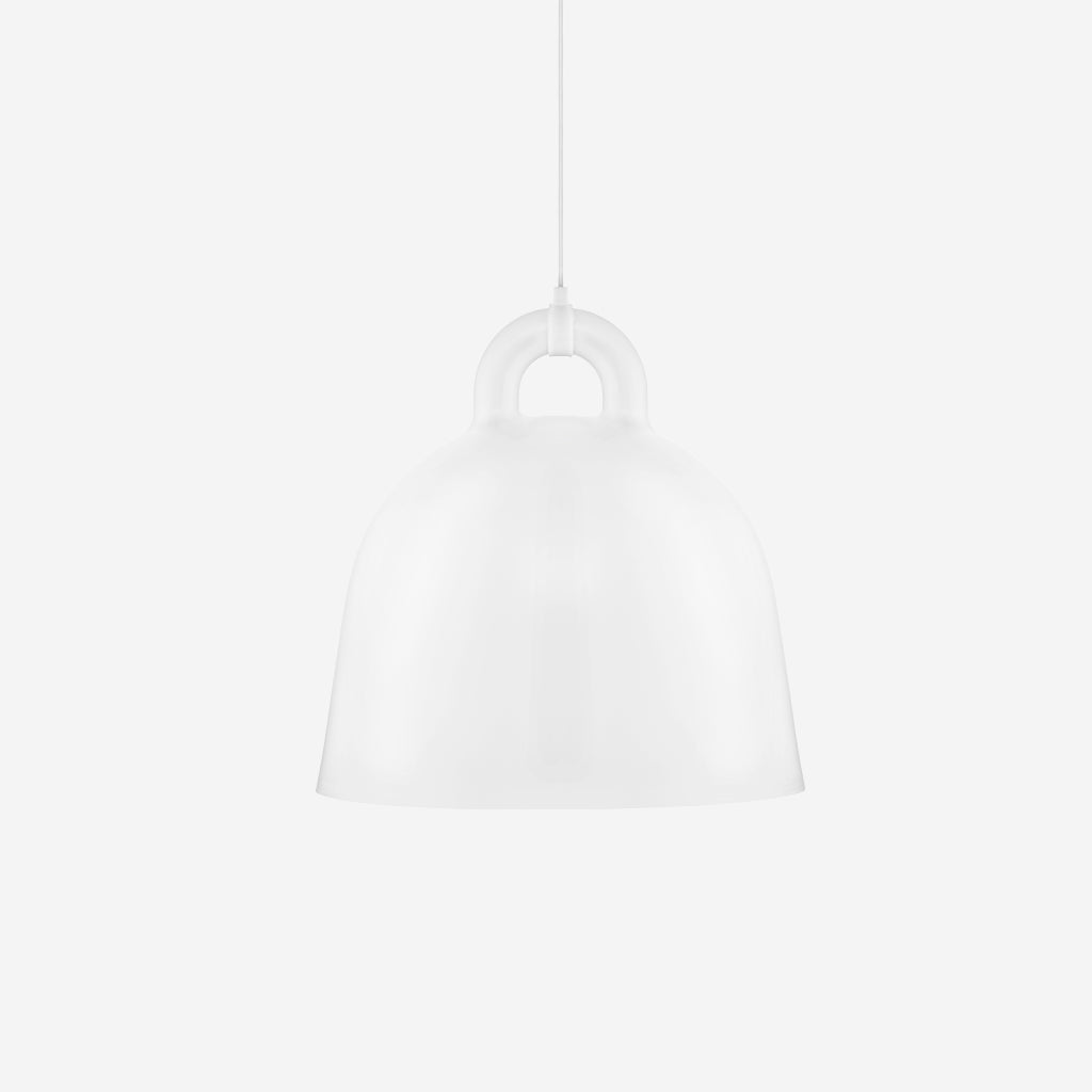 The designers Andreas Lund and Jacob Rudbeck have taken their starting point for the design in the iconic shape of a bell. The lamp’s rounded silhouette and matt surface give it the impression of having been cast. The white inner side reflects the light, which falls like a cone and provides practical lighting for several purposes.