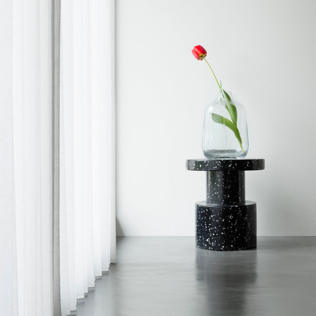 Bit is an aesthetically pleasing, versatile stool with countless possibilities for your home. Use Bit as a pedestal for a floral arrangement, as a side table for a lamp, or as impromptu seating for that unexpected dinner guest. Inspired by clear-cut shapes such as monoliths and columns, designer Simon Legald’s take on the stool is both bold and multifunctional. The straightforward, utilitarian look contrasts with the pixelated surface made up of small bits of 100% recycled household and industrial plastic.