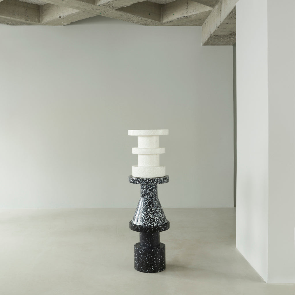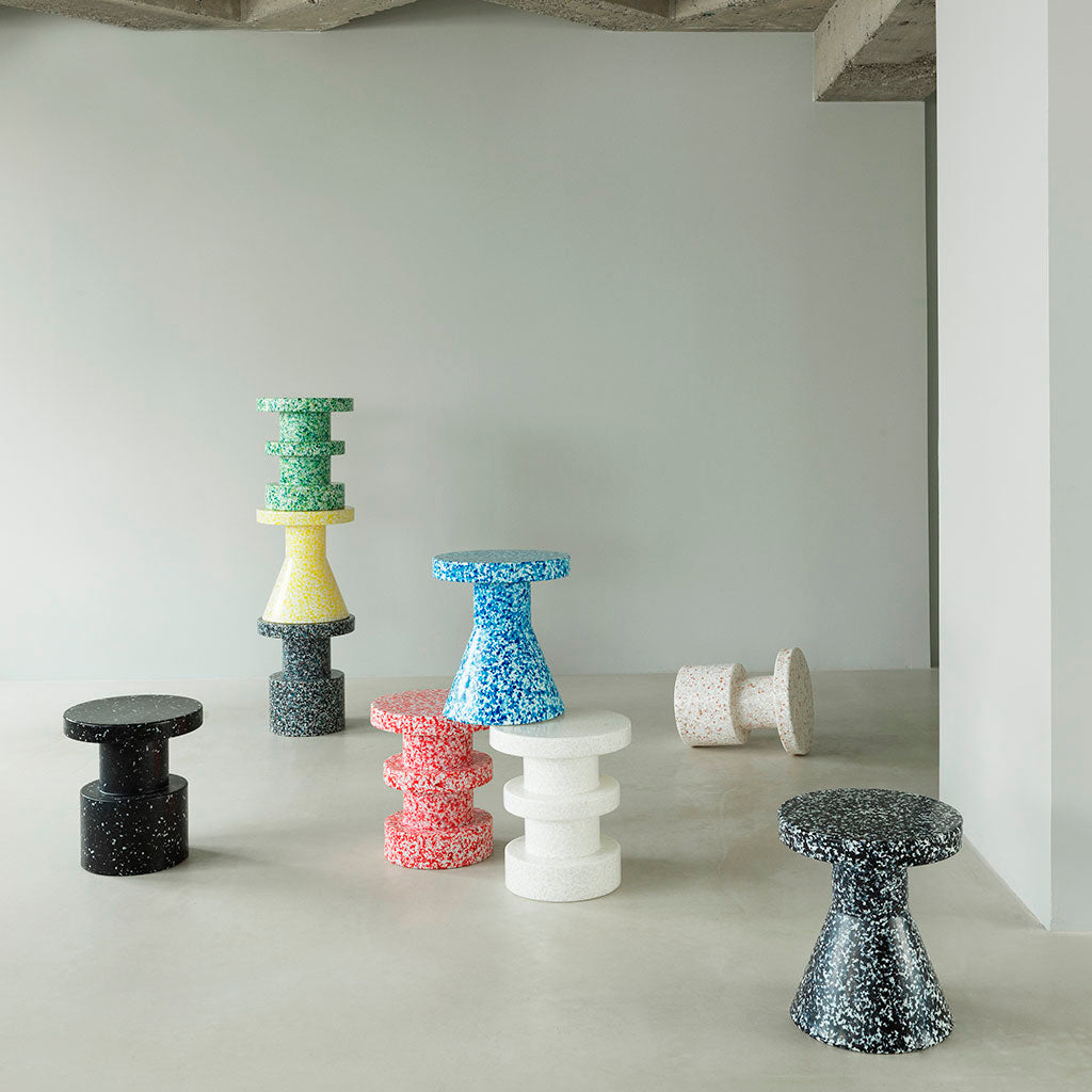 Bit is an aesthetically pleasing, versatile stool with countless possibilities for your home. Use Bit as a pedestal for a floral arrangement, as a side table for a lamp, or as impromptu seating for that unexpected dinner guest. Inspired by clear-cut shapes such as monoliths and columns, designer Simon Legald’s take on the stool is both bold and multifunctional. The straightforward, utilitarian look contrasts with the pixelated surface made up of small bits of 100% recycled household and industrial plastic.
