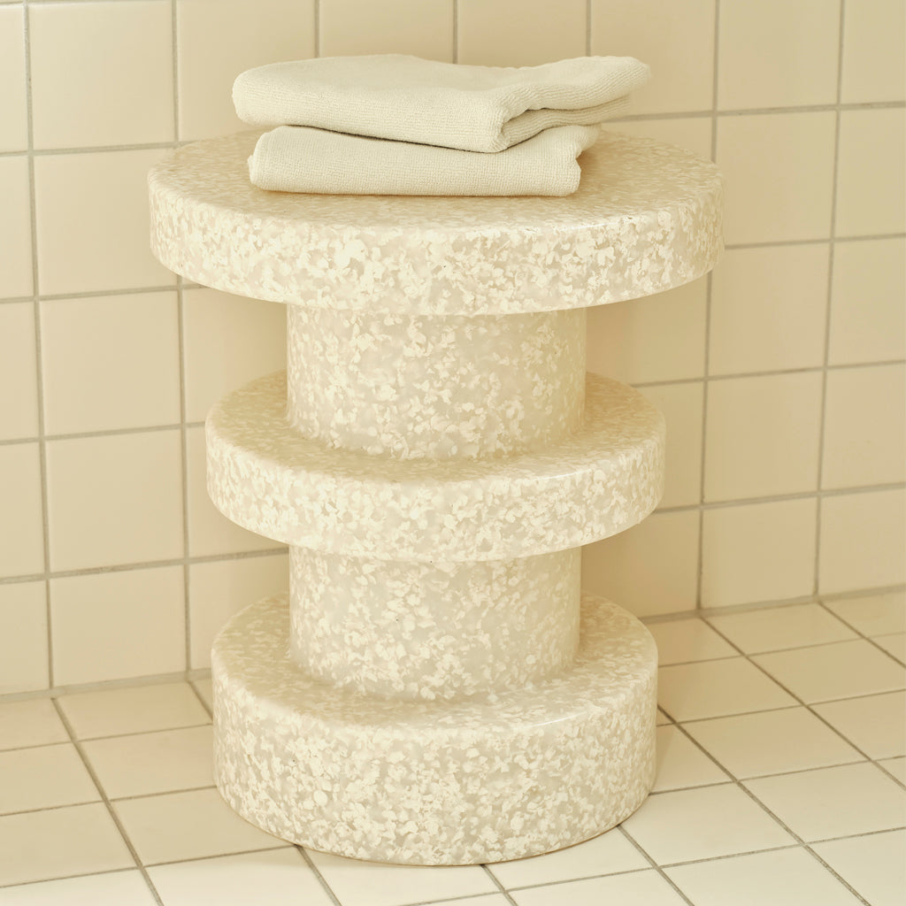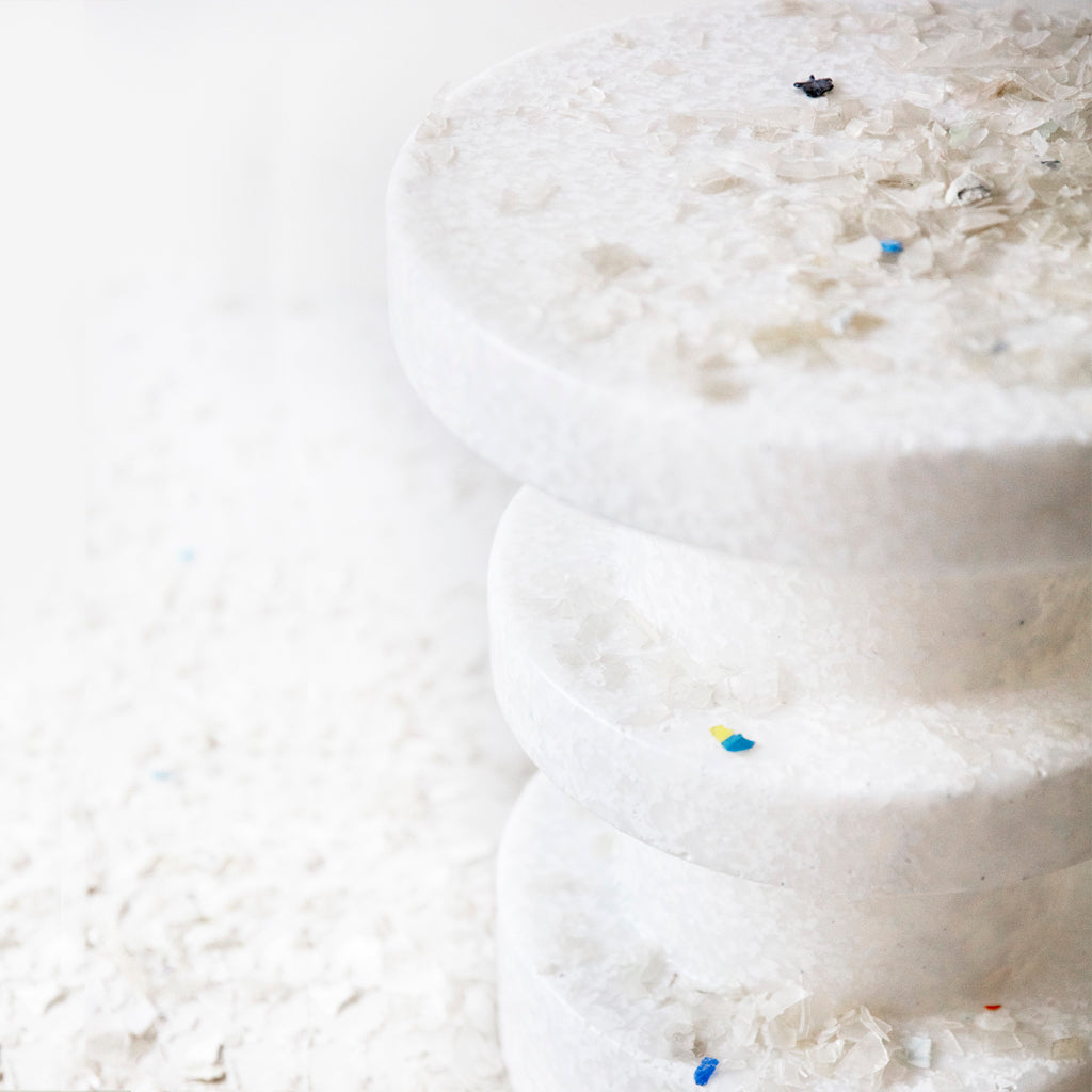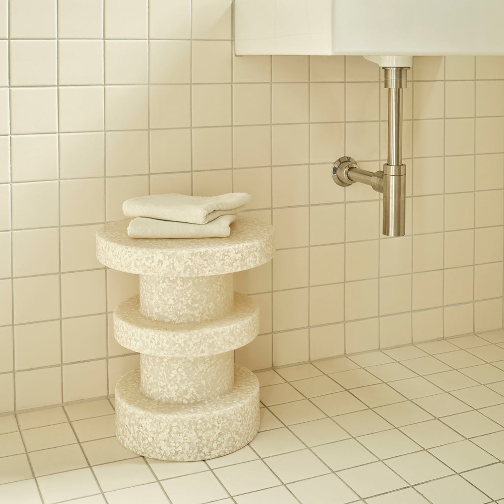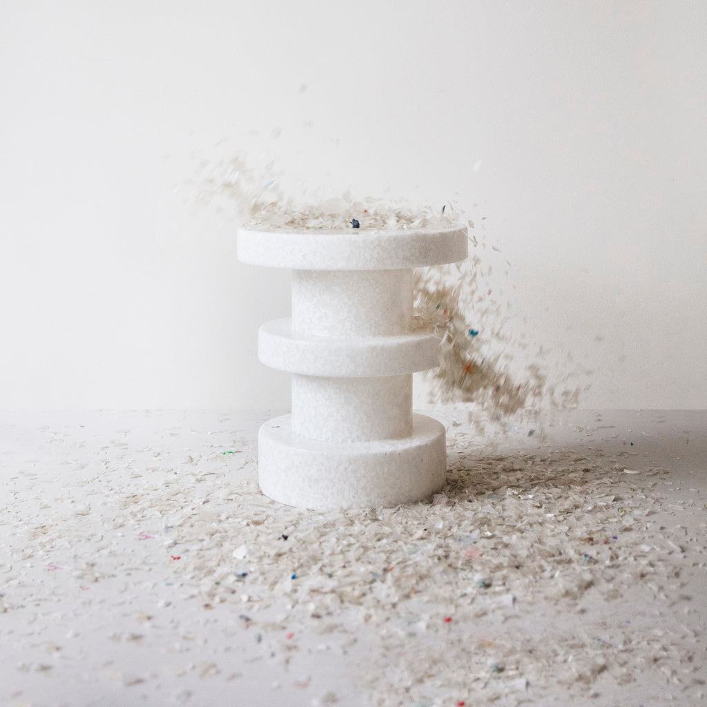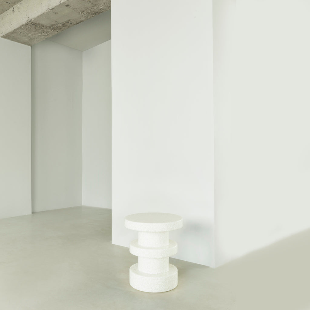 Bit is an aesthetically pleasing, versatile stool with countless possibilities for your home. Use Bit as a pedestal for a floral arrangement, as a side table for a lamp, or as impromptu seating for that unexpected dinner guest. Inspired by clear-cut shapes such as monoliths and columns, designer Simon Legald’s take on the stool is both bold and multifunctional. The straightforward, utilitarian look contrasts with the pixelated surface made up of small bits of 100% recycled household and industrial plastic.