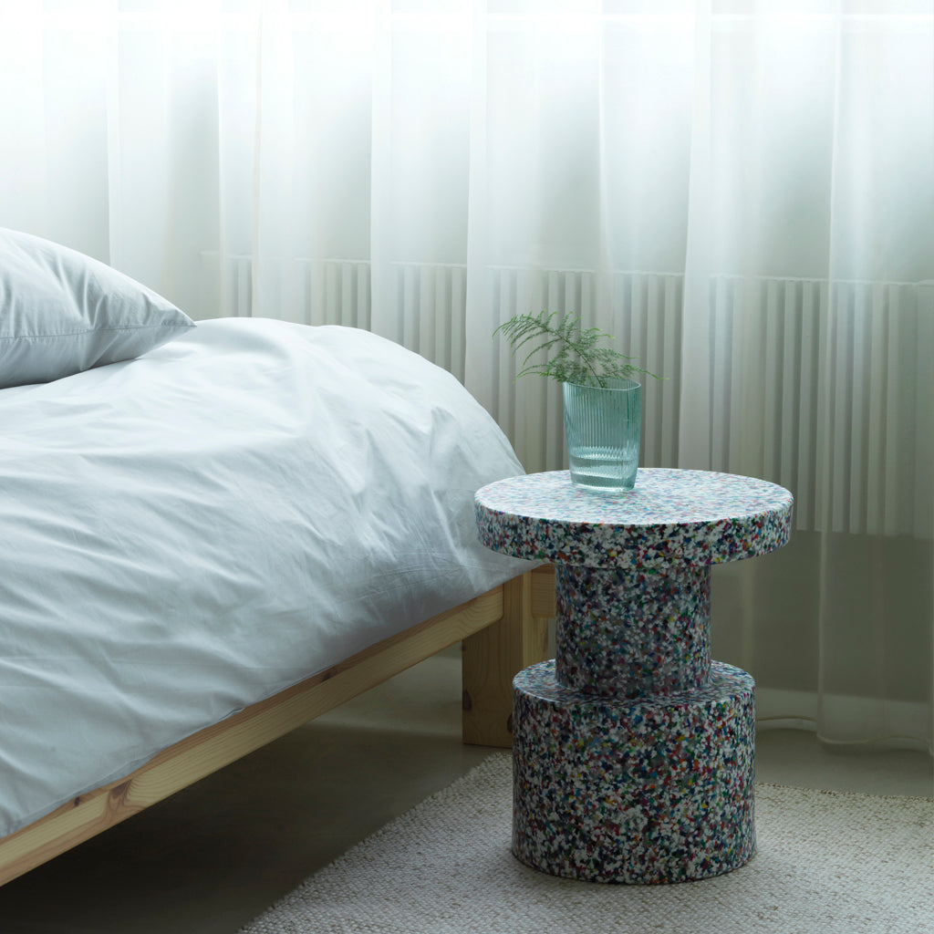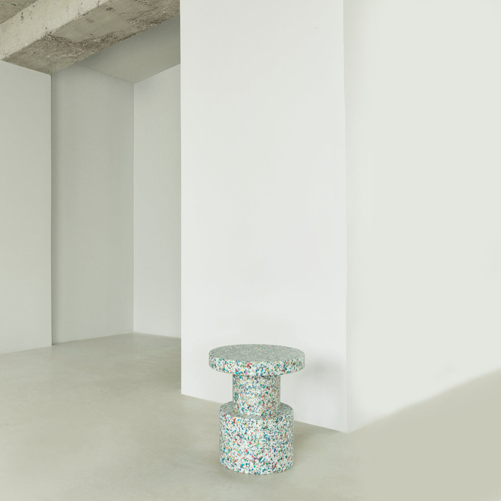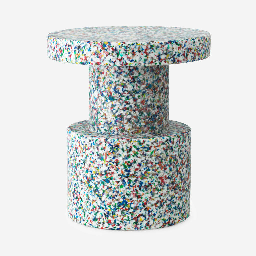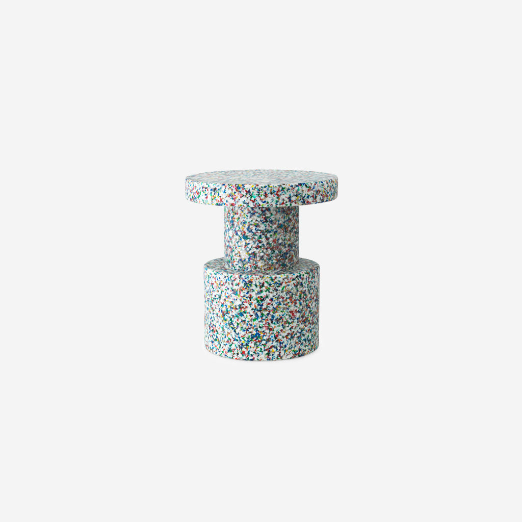 Bit is an aesthetically pleasing, versatile stool with countless possibilities for your home. Use Bit as a pedestal for a floral arrangement, as a side table for a lamp, or as impromptu seating for that unexpected dinner guest. Inspired by clear-cut shapes such as monoliths and columns, designer Simon Legald’s take on the stool is both bold and multifunctional. The straightforward, utilitarian look contrasts with the pixelated surface made up of small bits of 100% recycled household and industrial plastic.