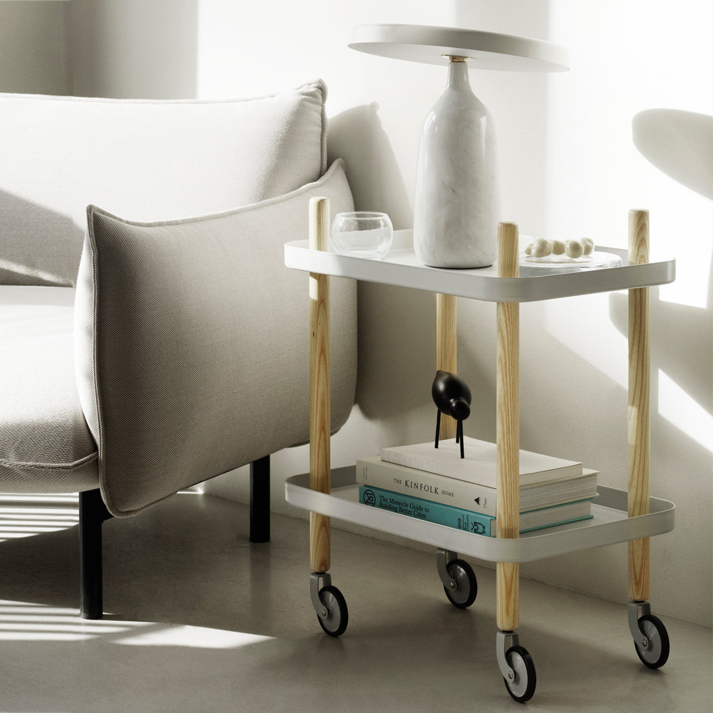 Designer Simon Legald was inspired by the classic trolley table, which he has updated and made his own with simple, yet impactful means. Block’s rounded shape, contrasting materials and the combination of craft and industry leaves the designer’s signature on the design and gives the table its unique expression.