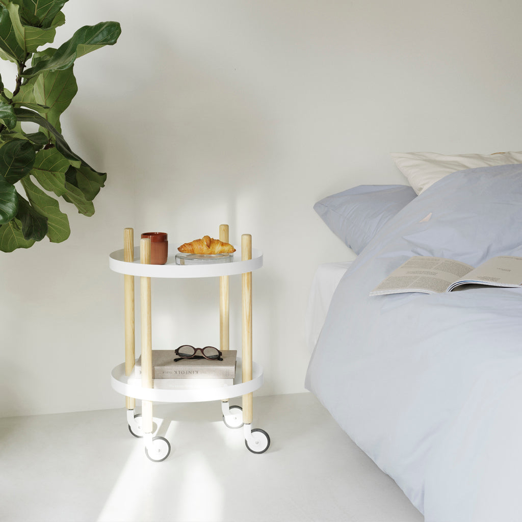 Block has no specific direction and can be used from all four sides. It is a versatile piece of furniture with many different functions in the home. Use Block as a serving trolley or side table, in the kitchen, as a bedside table, for a home bar or in the children’s room.