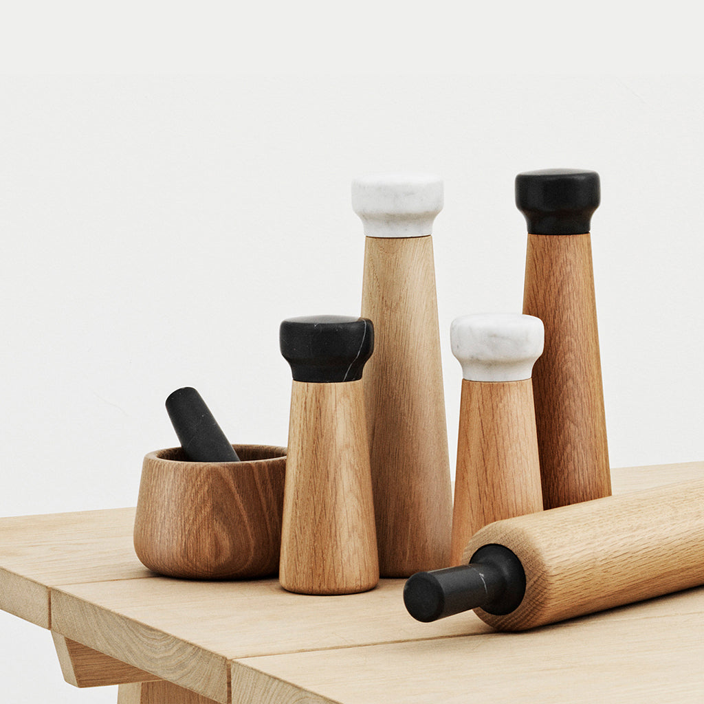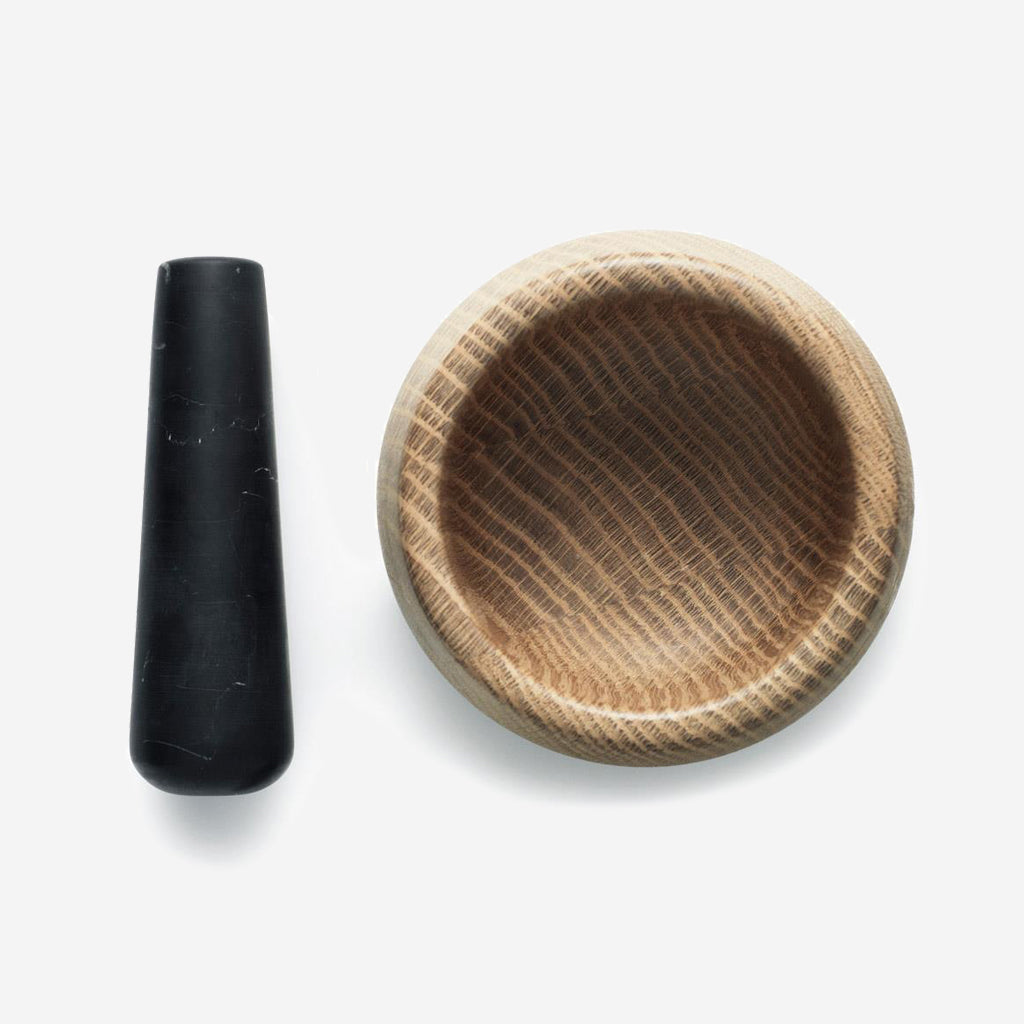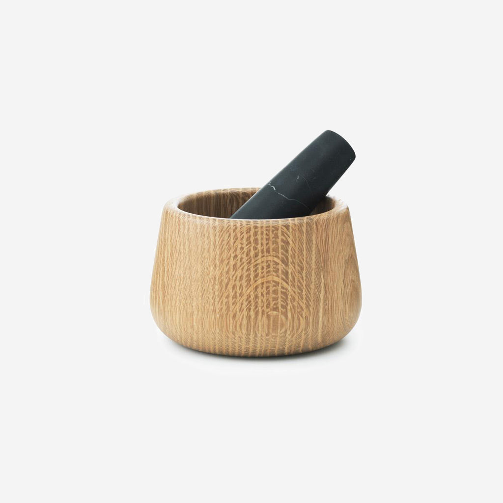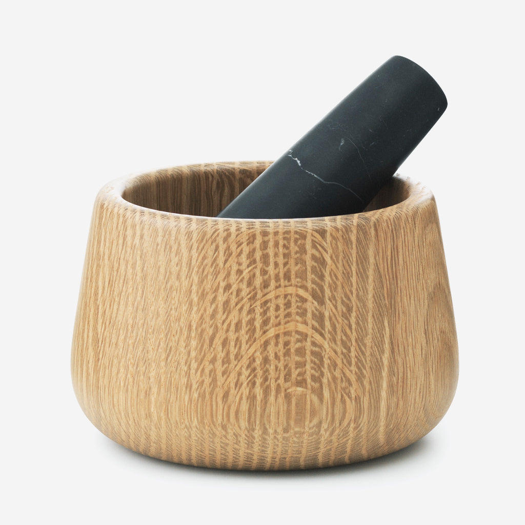 The Craft Mortar & Pestle is an excellent quality kitchen utensil in exclusive natural materials. The solid oak and robust marble make the mortar with pestle ideal for grounding all kinds of herbs and spices, and the shape of the pestle ensures a comfortable grip when using it.