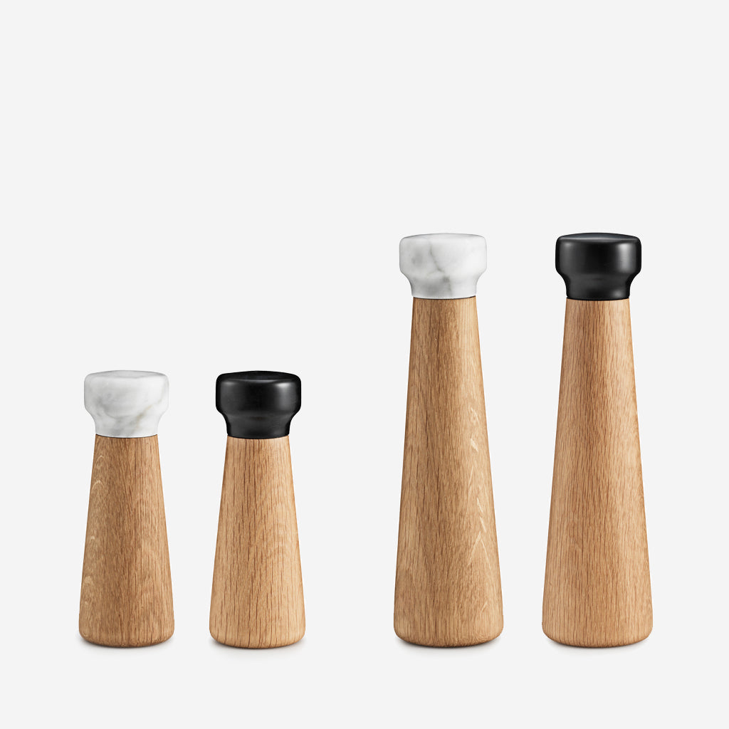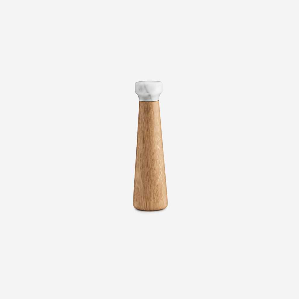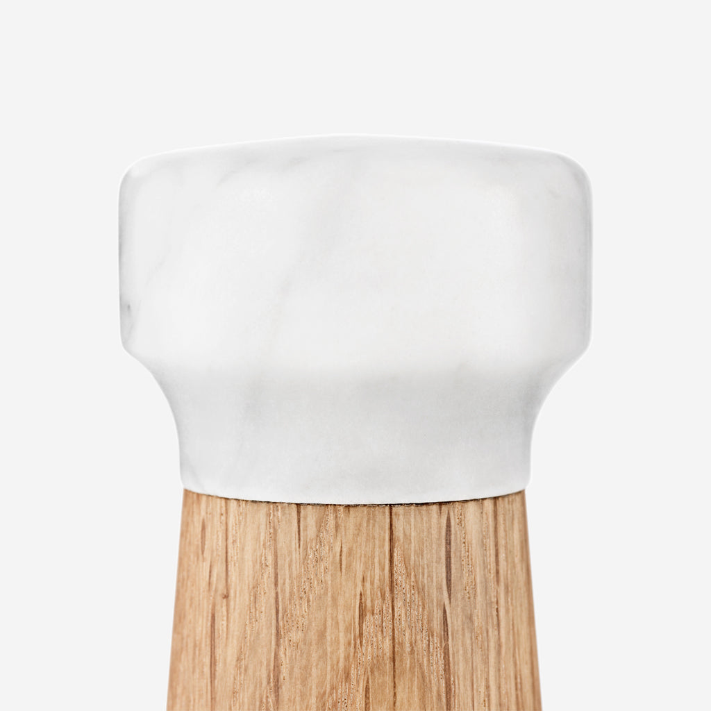 Hidden inside of Craft is a ceramic CrushGrind grinder. This is one of the leading brands on the market used for mills. CrushGrind has been tested to grind salt and pepper for an equivalent of up to 200 years use in a normal home without showing any notable wear. A long-lasting body of solid oak, along with a sturdy knob made of marble, makes Craft suitable for frequent everyday use.