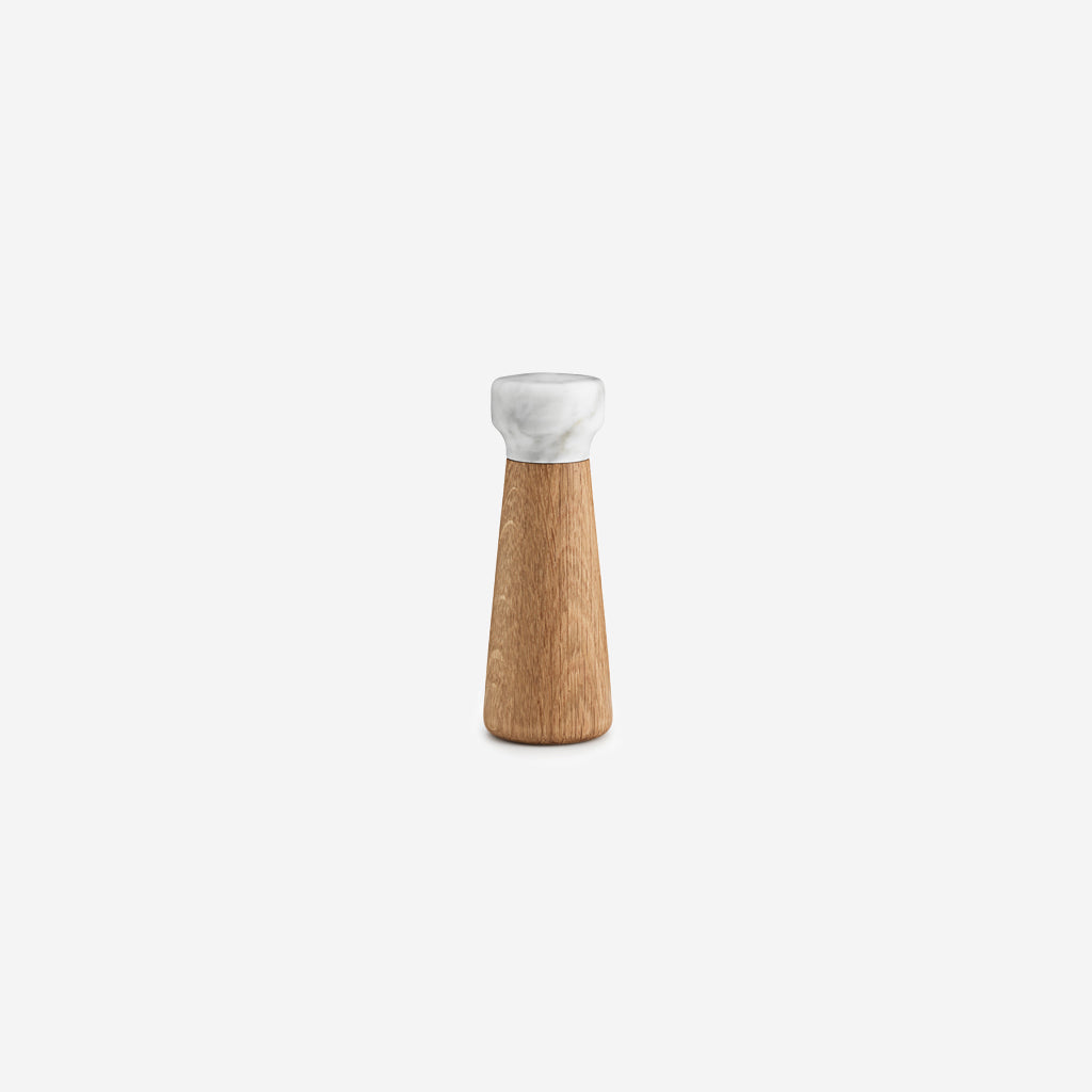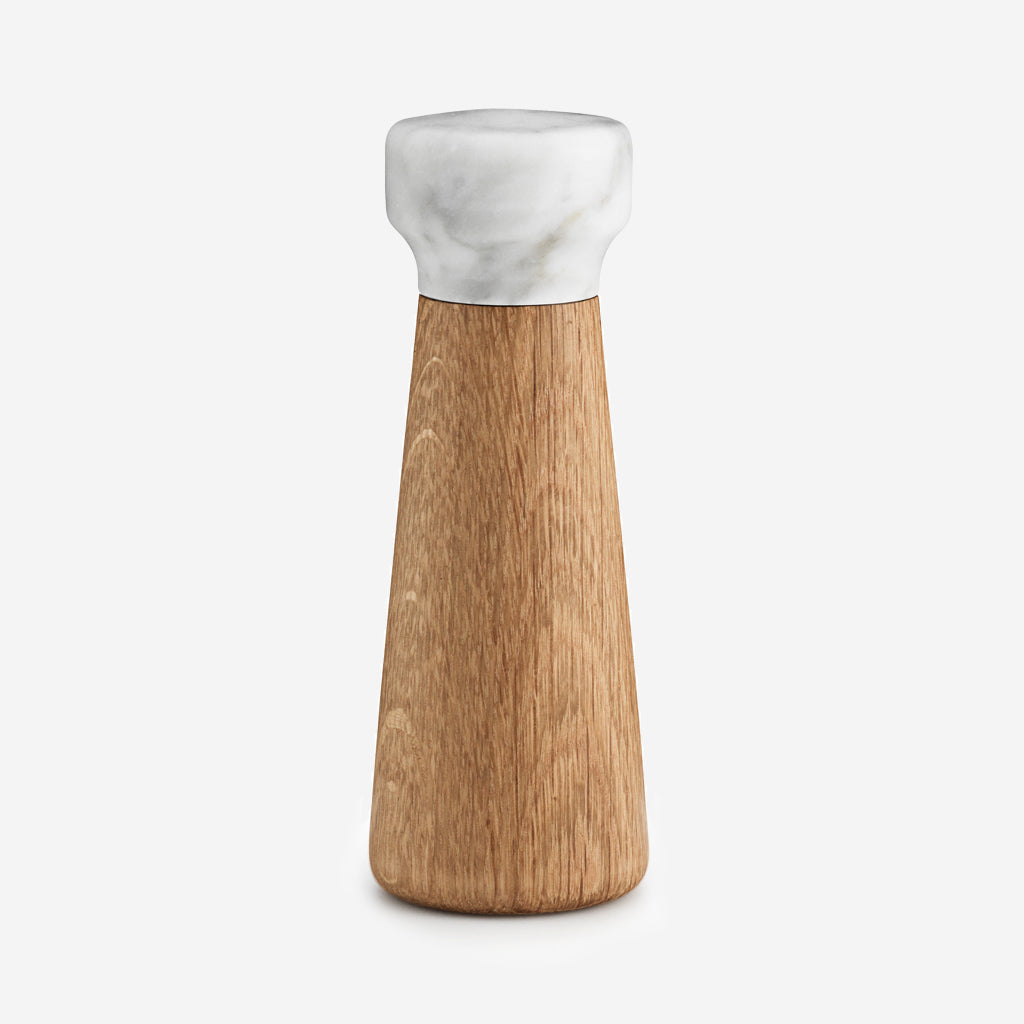 Hidden inside of Craft is a ceramic CrushGrind grinder. This is one of the leading brands on the market used for mills. CrushGrind has been tested to grind salt and pepper for an equivalent of up to 200 years use in a normal home without showing any notable wear. A long-lasting body of solid oak, along with a sturdy knob made of marble, makes Craft suitable for frequent everyday use.