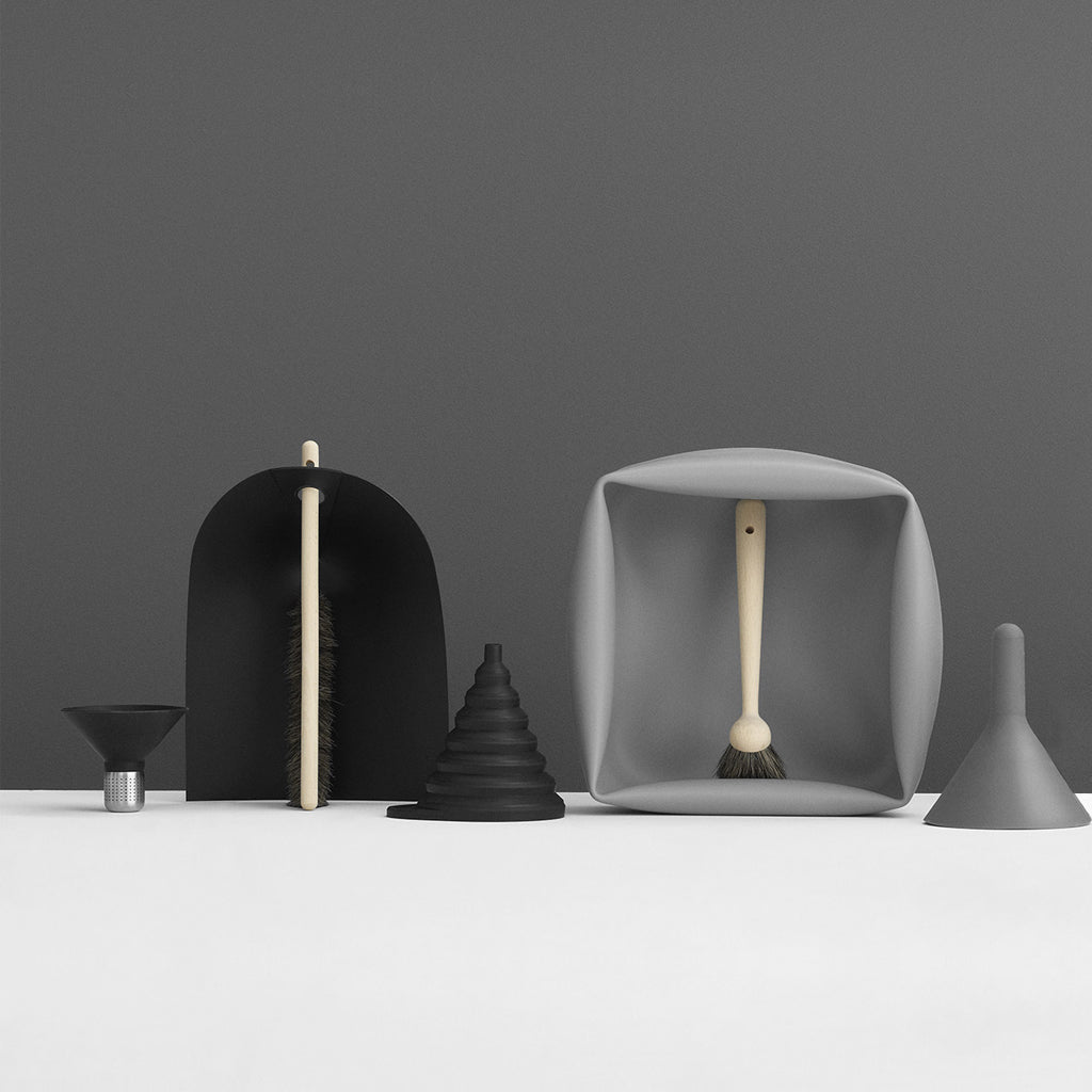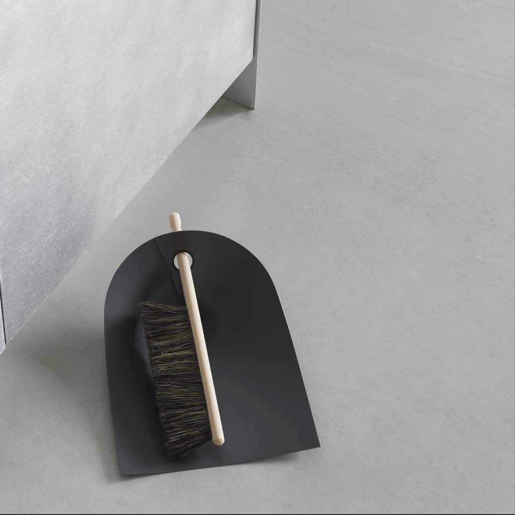 The dustpan is, in all its simplicity, constructed from a piece of flat plastic, shaped to fit comfortably in the hand. The thin and flexible material makes it easy to collect all kinds of dirt. The broom is made of wood and natural bristles and combines traditional craftsmanship and modern production, ensuring durability and a simple expression of design.