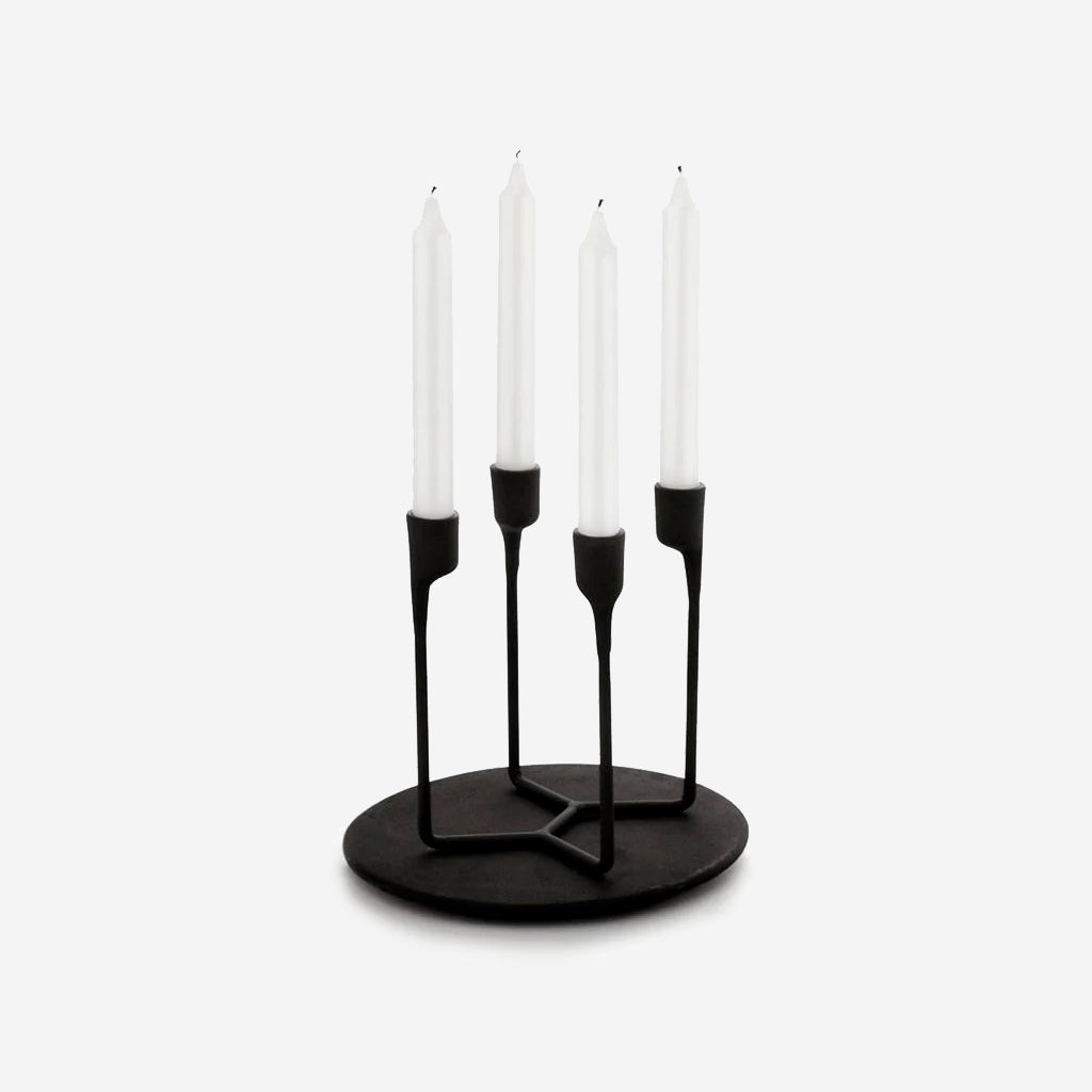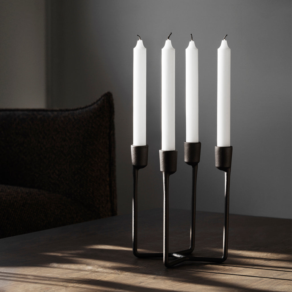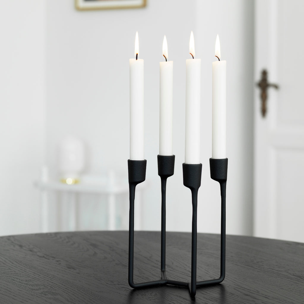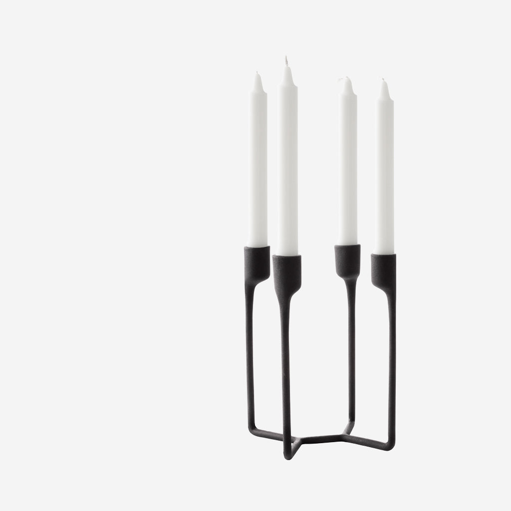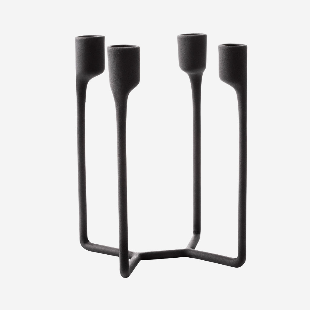 Heima features a recognizable design and pay tribute to industrial craftsmanship and to the Nordic traditions. The uneven, almost cold surface gives this Heima candelabra character, while the 4-arm prong design exudes a contemporary aesthetic.
