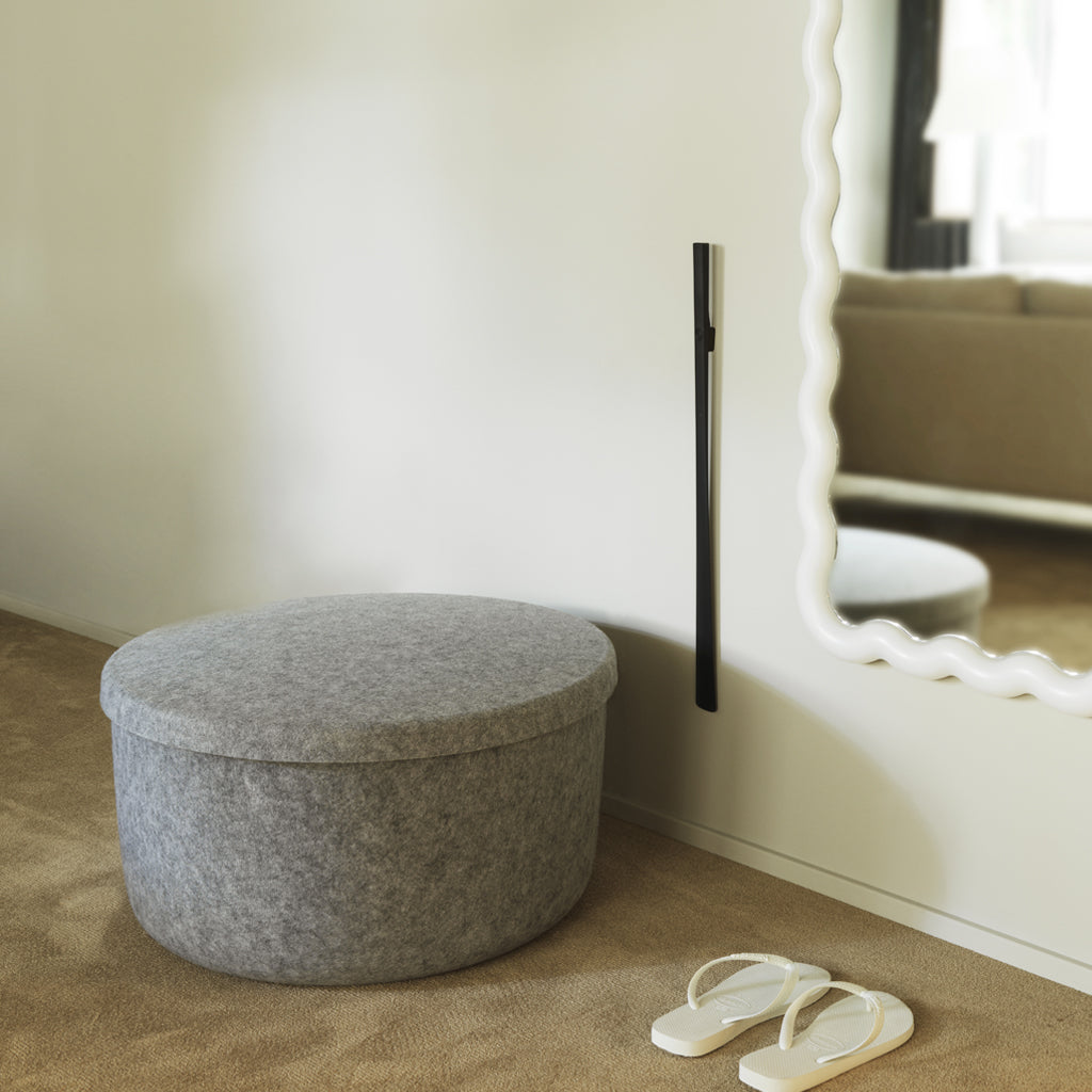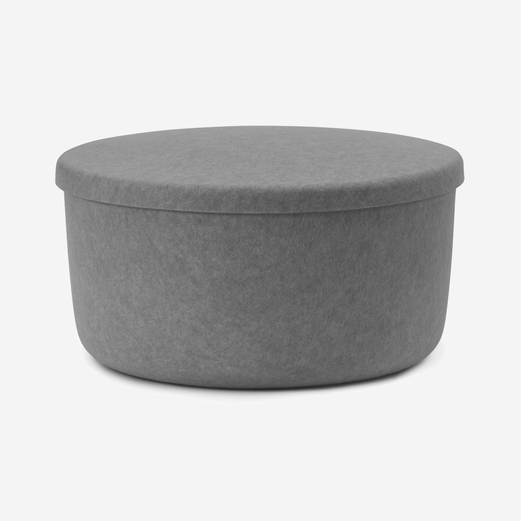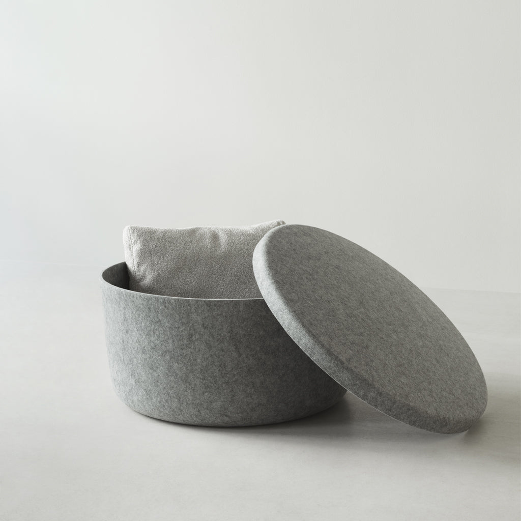 Hide Pouf is a versatile and multifunctional piece of furniture that is a little more resourceful. The core of the design behind Hide Storage Pouf is its material composition. The pouf is made from PET felt, a remarkable fabric made from recycled plastic bottles that undergo a transformative process where they are extruded into fine polyester fibers, which are then carefully pressed to create a durable and aesthetically pleasing felt material.