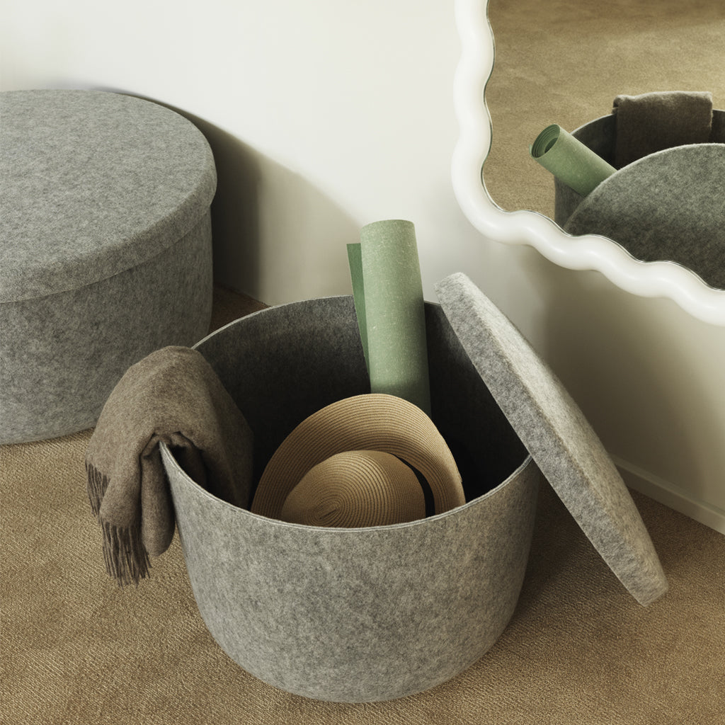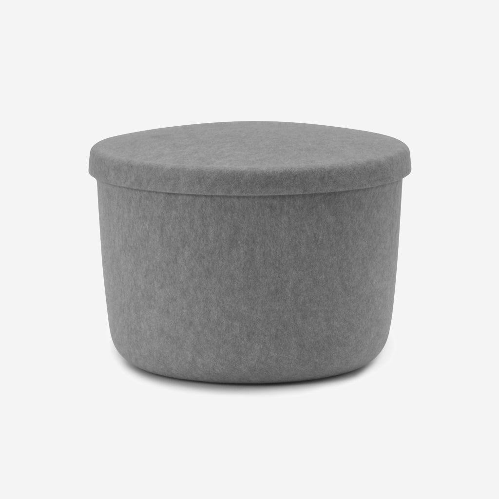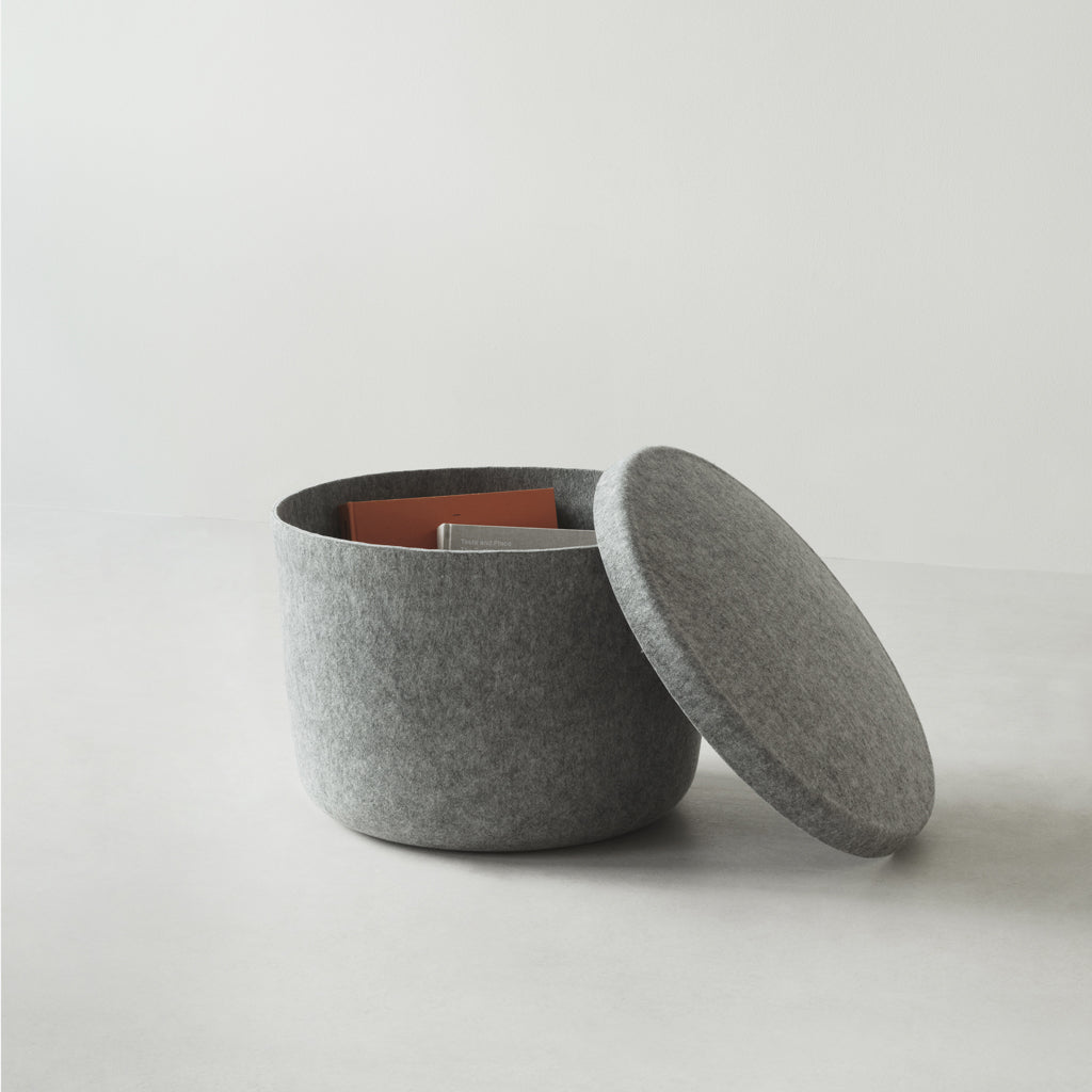 Hide Puf is a versatile and multifunctional piece of furniture that is a little more resourceful. The core of the design behind Hide Storage Pouf is its material composition. The pouf is made from PET felt, a remarkable fabric made from recycled plastic bottles that undergo a transformative process where they are extruded into fine polyester fibers, which are then carefully pressed to create a durable and aesthetically pleasing felt material.