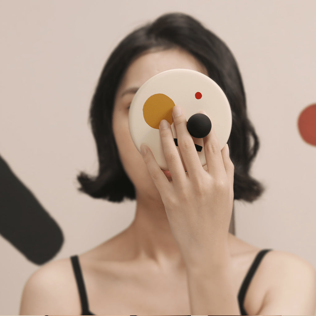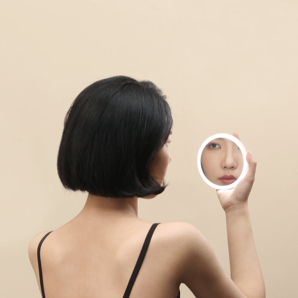 The One Simple Concept make up mirror is a hand-held illuminating makeup mirror perfect for travel. Small and compact, with a built-in professional grade LED illumination system, it is perfect for on the go touching up. The back of the makeup mirror is designed ergonomically with a silica gel ball to add comfort while in handheld position and acts as a stand when placed on a surface. The handheld makeup mirror has a built in rechargeable battery making it perfect for travelling.