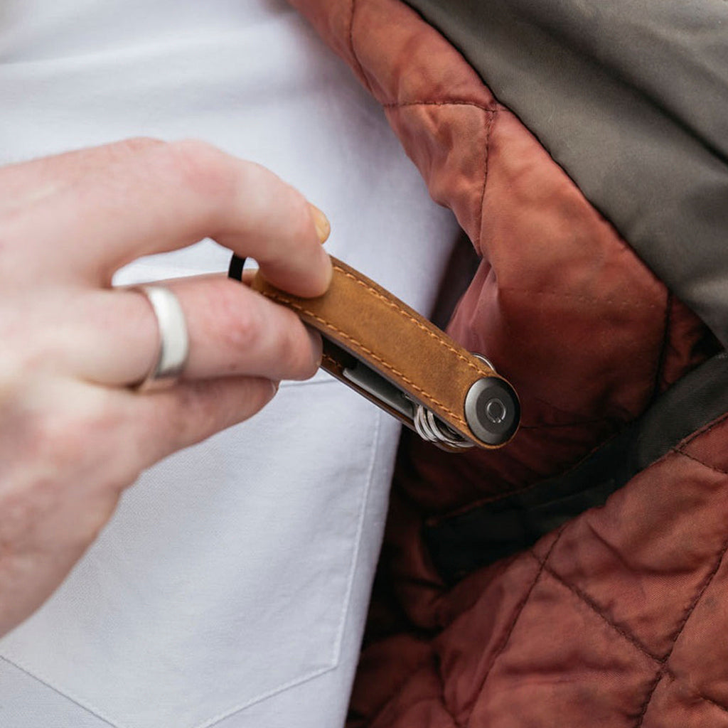 Elegantly store your keys into a silent stack. The Leather Key Organiser holds between 2-7 keys in a slim and quiet profile. Created with a combination of hand-crafted leathers combined with stainless steel locking mechanism, it is a style that matures with beauty over time. Every Key Organiser in Leather includes a premium D-ring attachment, useful for attaching your larger keys and car fobs.