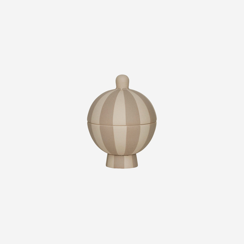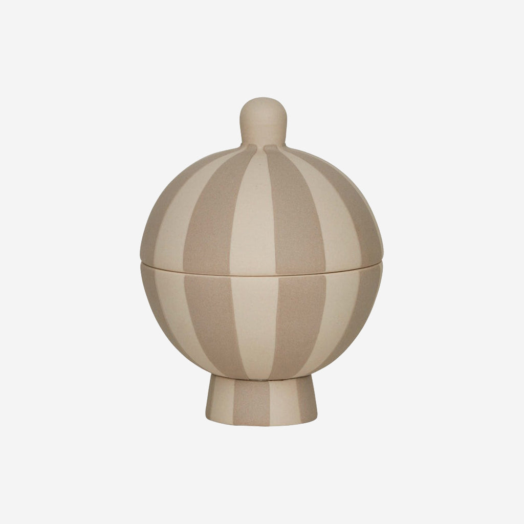 The Toppu Bonbonniere is a valued addition to the Toppu Family and a timeless OYOY classic. Meticulously handmade, each stripe is carefully painted by a team of highly skilled women, ensuring precision and consistency across all Toppu items. Beyond its decorative charm, this bonbonniere serves a practical purpose in the kitchen - ideal for storing something savoury or sweet.