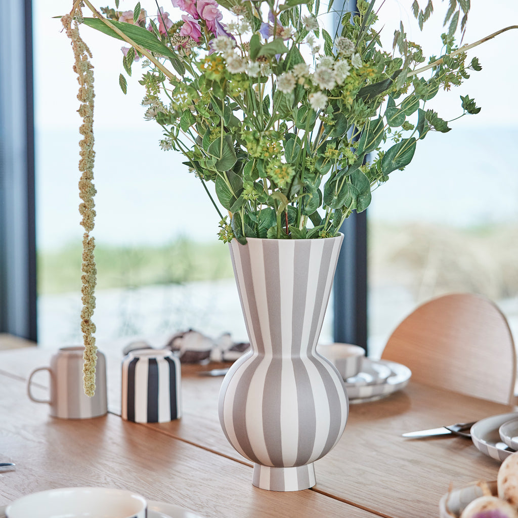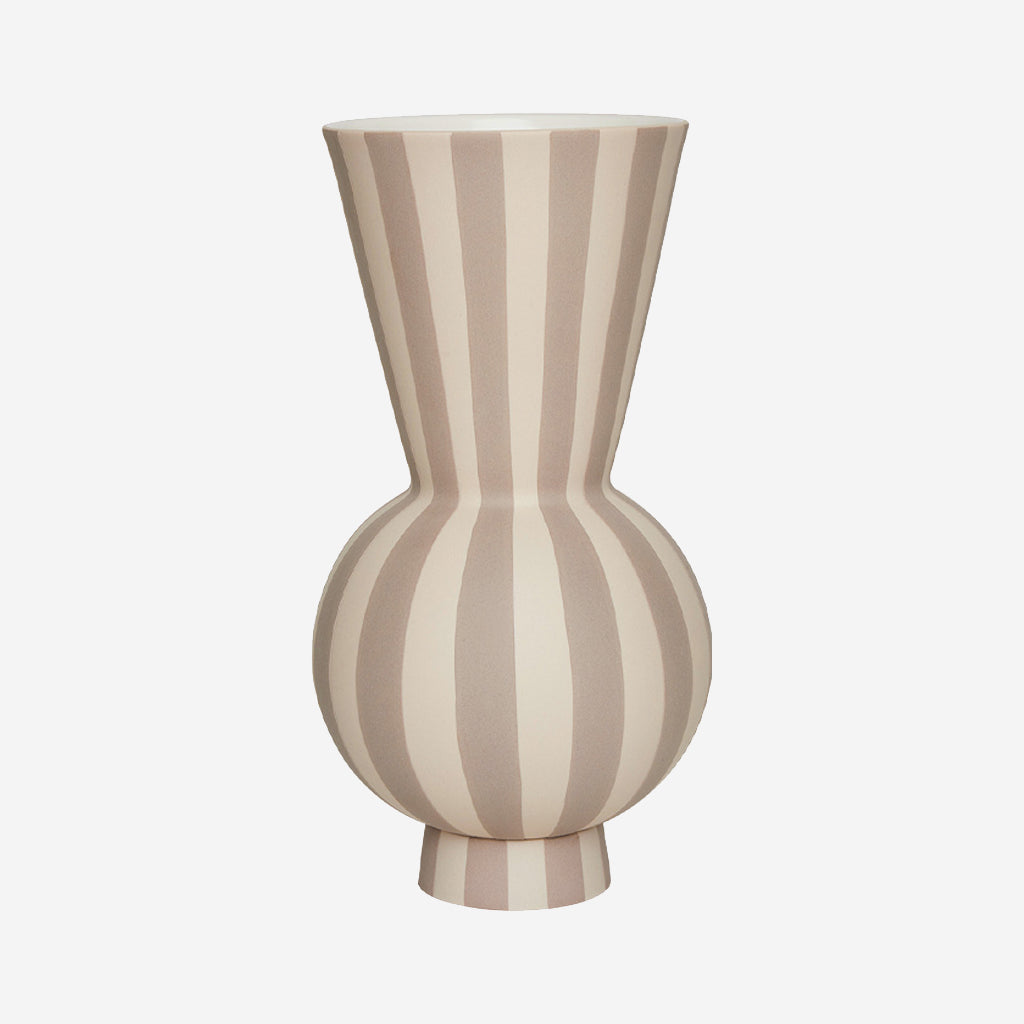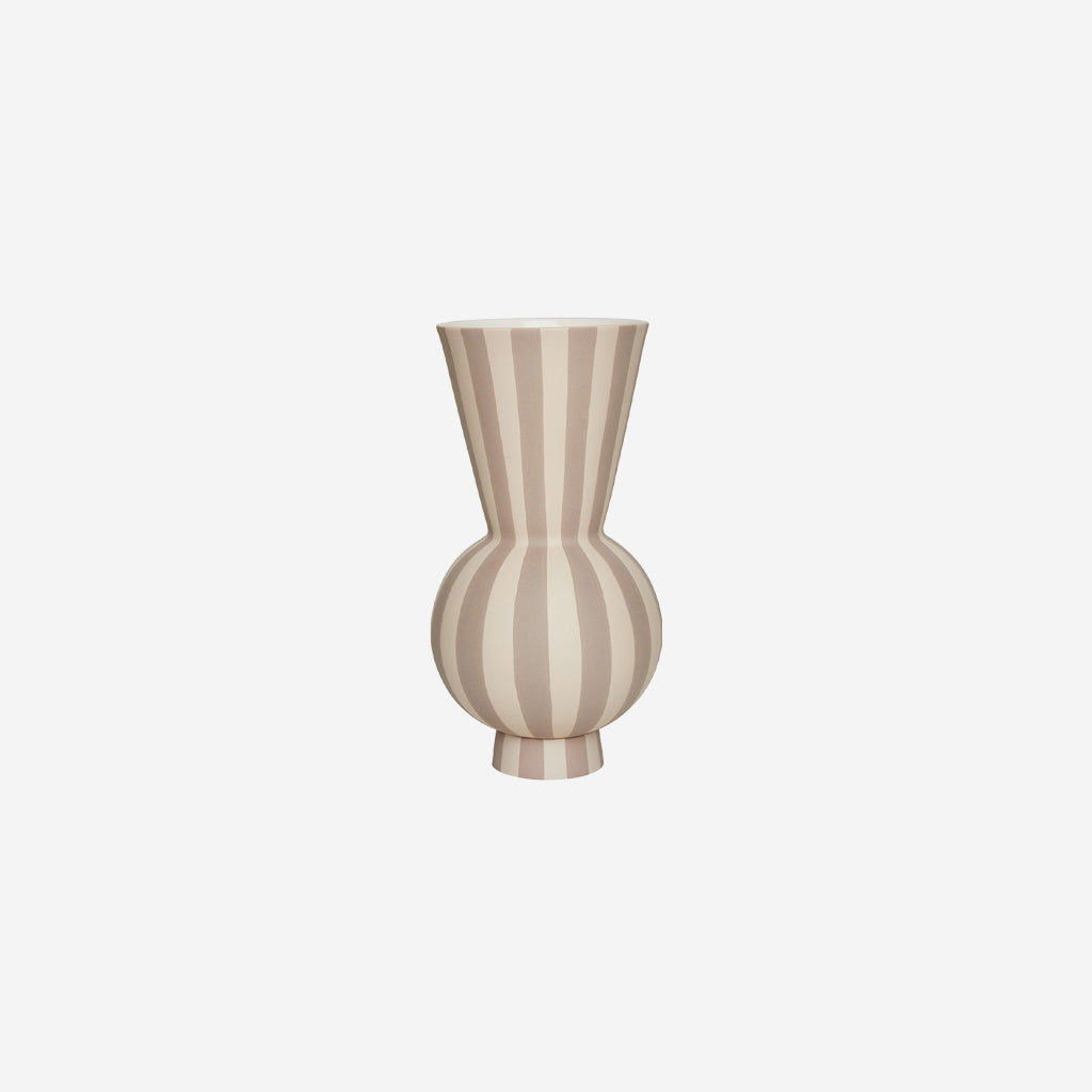The Toppu Round Vase is a cherished addition to the Toppu Family and an OYOY classic. Handmade with precision, a team of highly skilled women delicately paints each stripe, showcasing their expertise. The same dedicated team crafts all the Toppu items, ensuring consistency in craftsmanship. The vase's thoughtful design not only adds a touch of elegance but also ensures that flowers stand beautifully, making it a perfect blend of form and function.