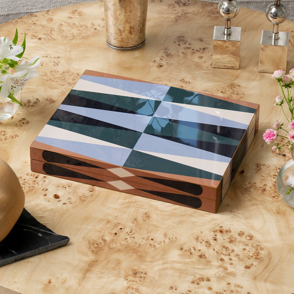 Discover Printwork's stunning Lacquered Backgammon Set, a true masterpiece of design and elegance. Featuring a large board made of wood and adorned with exquisite acrylic pieces, it beautifully combines classic charm with modern sophistication. Whether you choose to play or display it, this set is sure to impress.