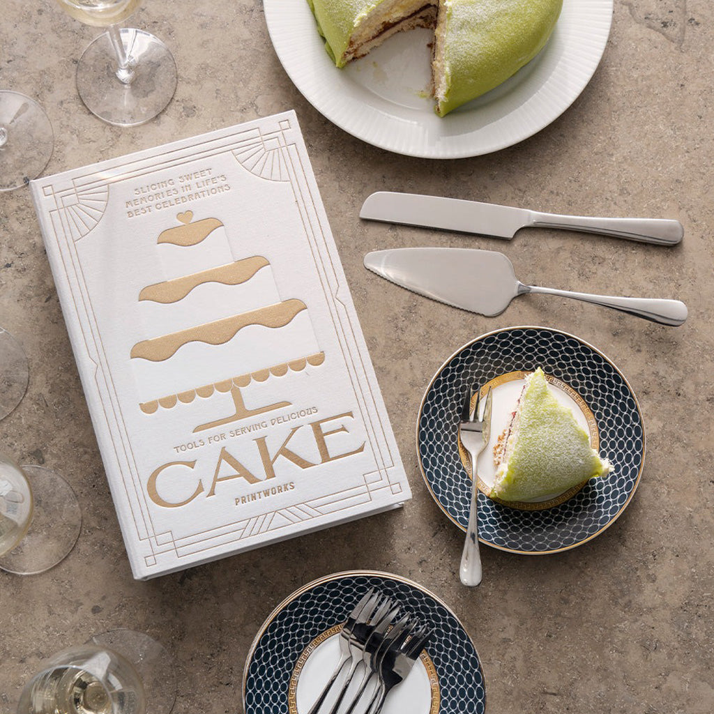 Discover Printwork's Cake Kit, beautifully presented in an elegant, book-like box. Inside, you’ll find all the essential tools needed to serve your stunning cakes. When not in use, this kit serves as a stylish addition to your kitchen decor, perfectly complementing your favourite recipe books.