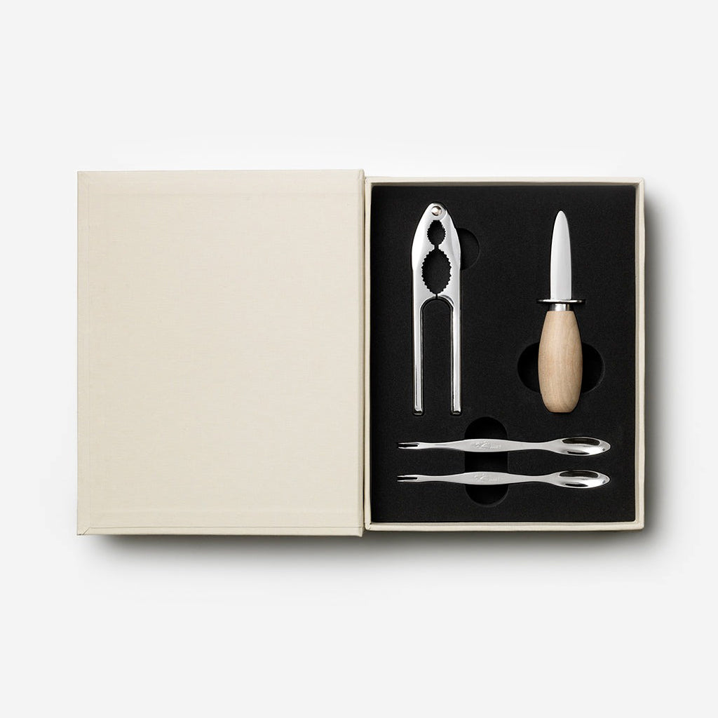 Discover our Essential Kit for Seafood lovers, cleverly disguised as an elegant book-like box. It is the perfect fusion of aesthetics and functionality. Upon opening it, you will discover all the essential tools for your beloved seafood parties. All tools are made of stainless steel and are dishwasher safe.