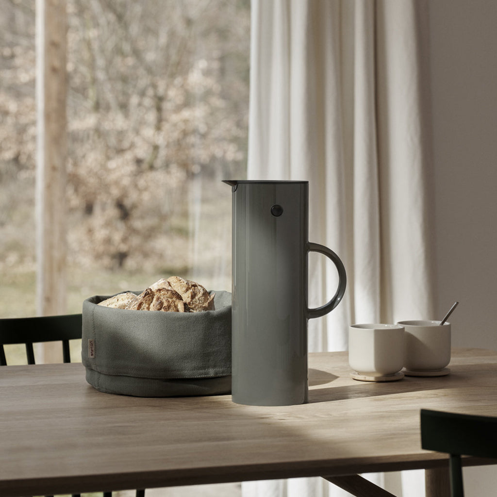 A true Danish Design icon and Stelton's best selling product, the vacuum jug with the unique rocker stopper was created by the Danish designer Erik Magnussen in 1977. Besides the rocker stopper it has a screw cap for transportation of liquids.