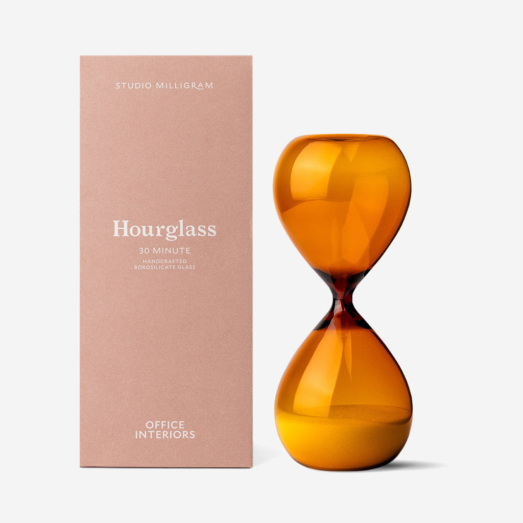Decorate your space with the elegant yet practical timepiece that is Studio Milligram's 30 Minute Hourglass. Made with an organically-shaped borosilicate glass, Studio Milligram's Hourglass is a striking decor feature all its own. More than just a pretty face, though, this stylish piece can be used to break up your day, set challenges for yourself and more. Commit to 30 minutes of focused work, or take time out to meditate, or simply remind yourself to move your body regularly - how you use the Hourglass is limited only by your own imagination.