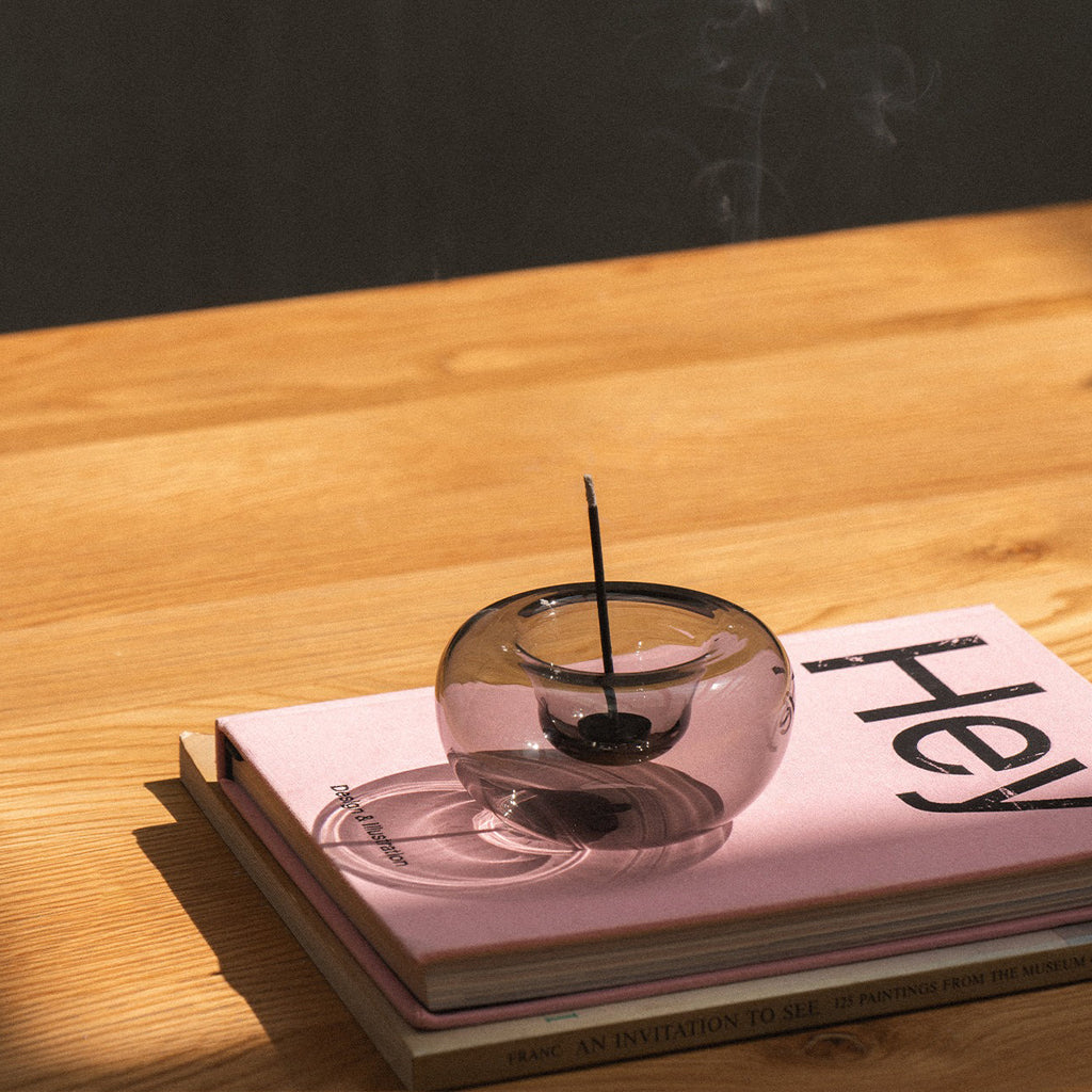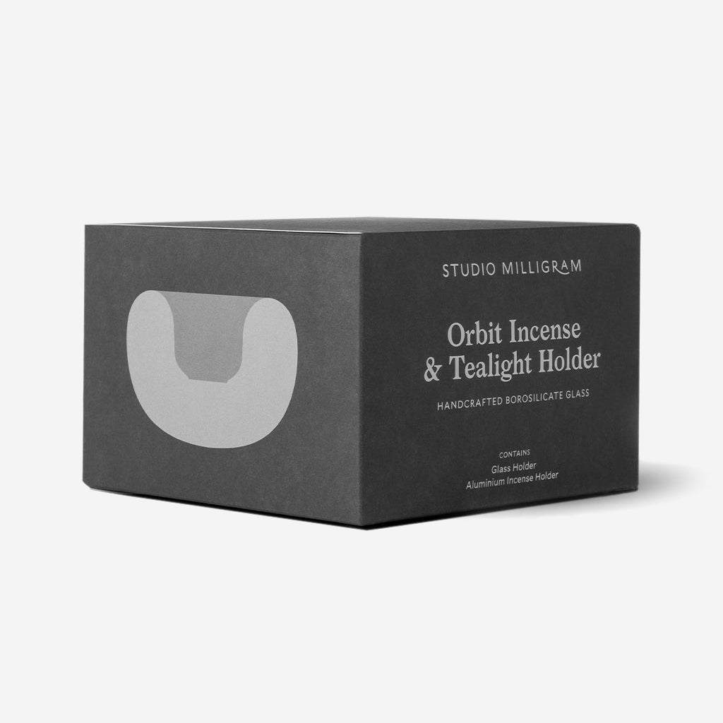Set a soothing tone in your space with the soft curves and delicate colour of Studio Milligram's Orbit Incense Holder. Made from translucent borosilicate glass, the Orbit Incense Holder's organic form plays with light to create a striking decor object. Its hollow can fit tealight candles as well as incense sticks with the included aluminium incense holder.