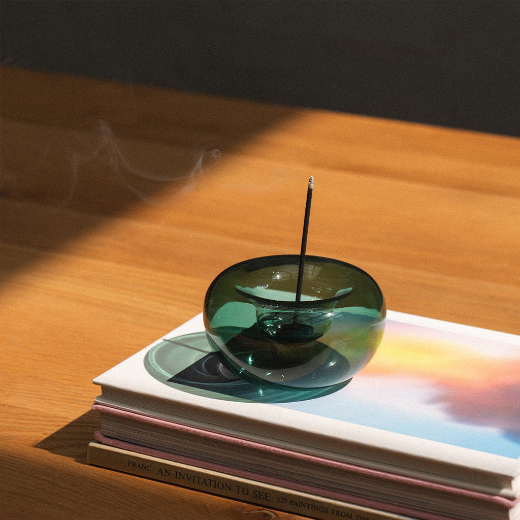 Set a soothing tone in your space with the soft curves and delicate colour of Studio Milligram's Orbit Incense Holder. Made from translucent borosilicate glass, the Orbit Incense Holder's organic form plays with light to create a striking decor object. Its hollow can fit tealight candles as well as incense sticks with the included aluminium incense holder.