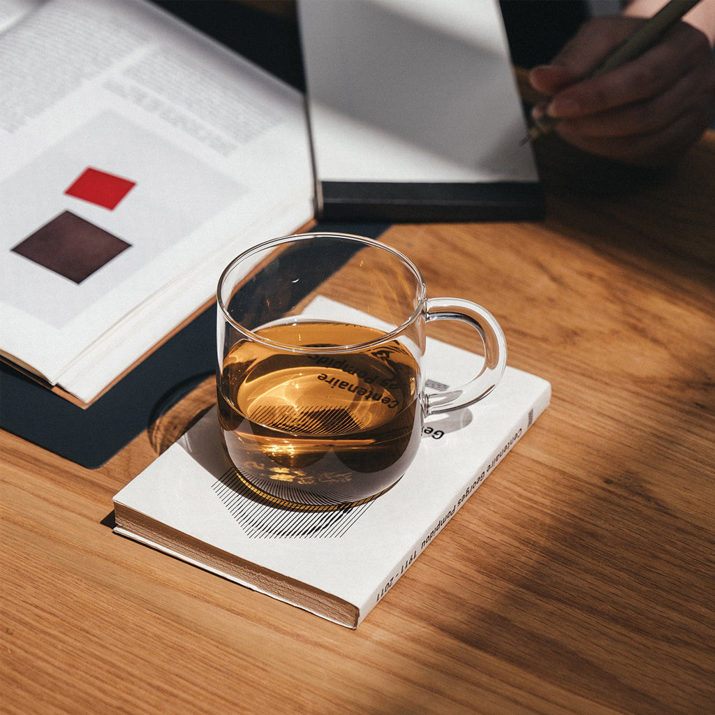 Sit back and savour a freshly-brewed cuppa with the modern, highly functional design of Studio Milligram's Tea Mug. Made from a light-weight borosilicate glass, the Tea Mug's form features gentle organic curves that sit naturally in your hand, with a wide mouth so you can enjoy the enchanting aromas of your tea.