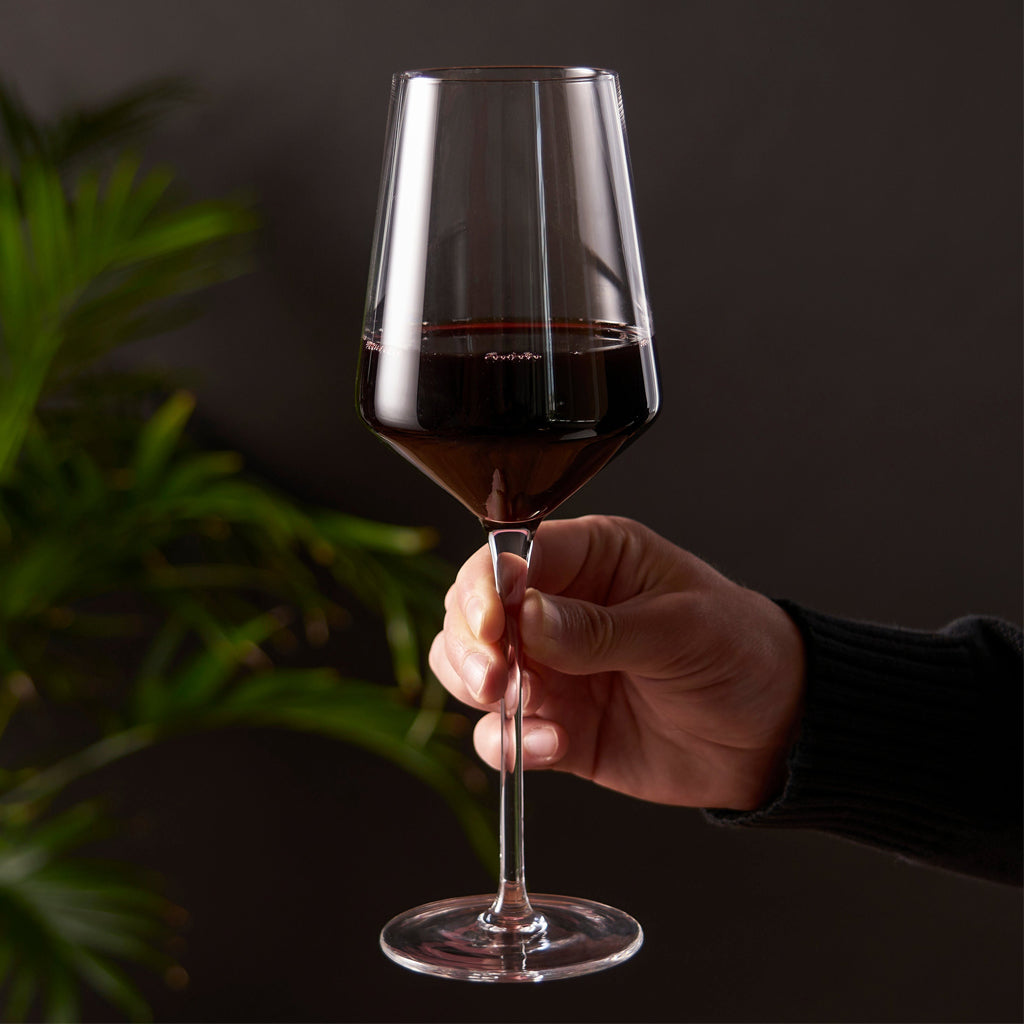 Sleek angles and tall stems give this beautiful lead-free crystal stemware a fresh, unique feel. Built for Bordeaux, these glasses are also ideal for any rich, complex reds from around the world.