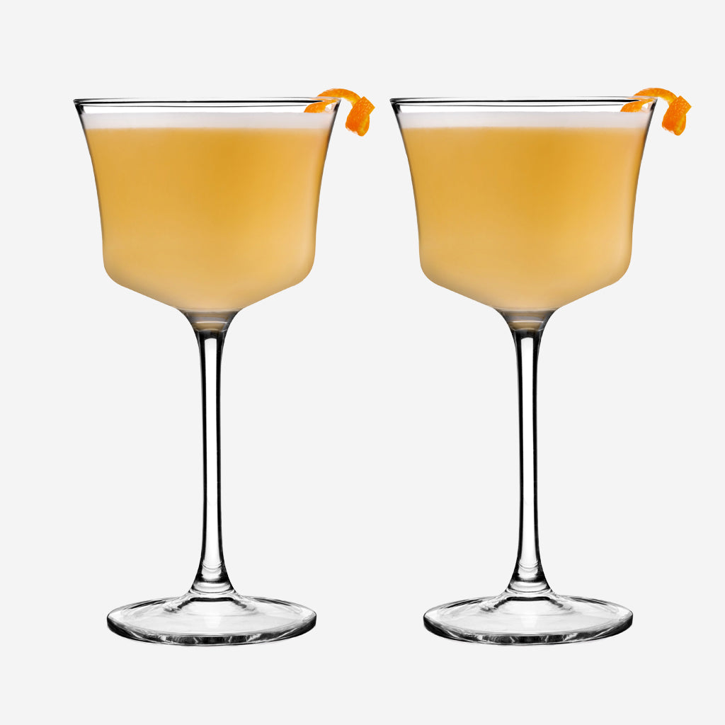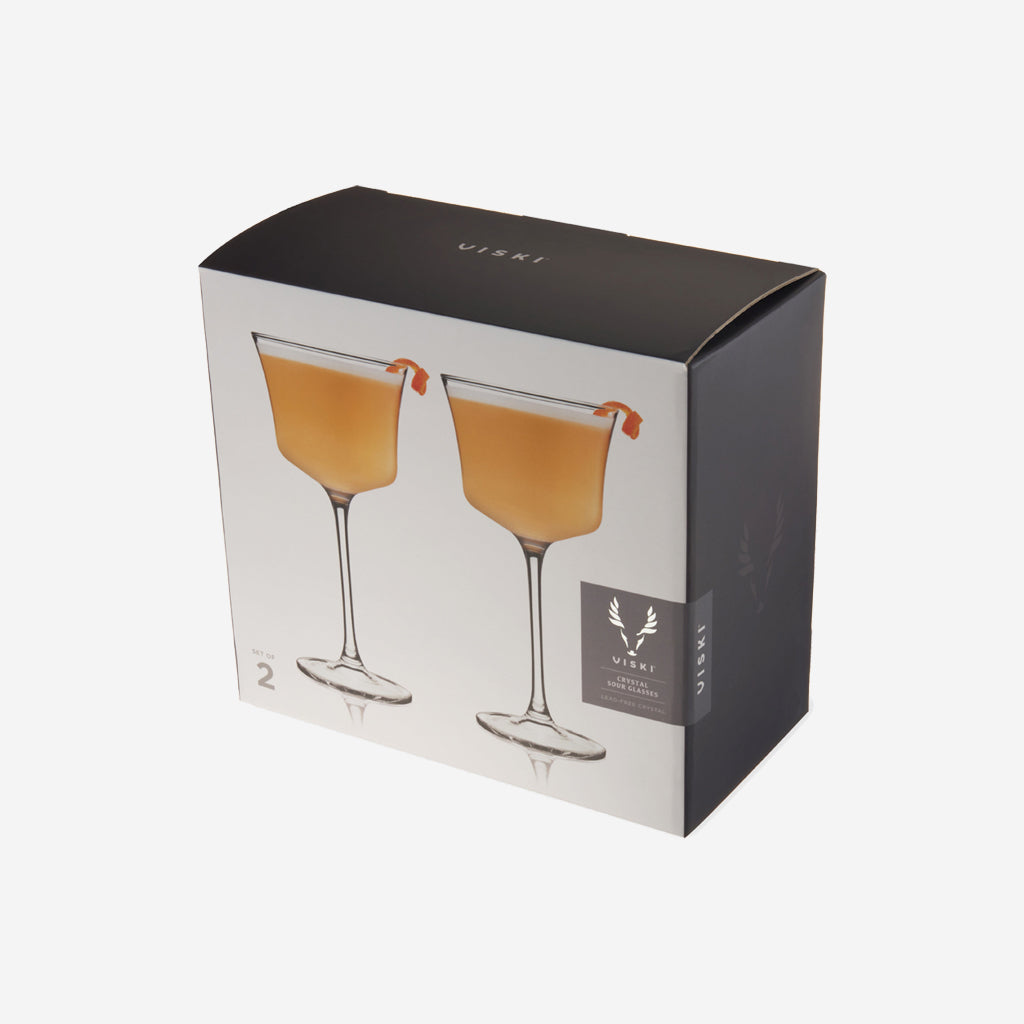 Perfect for small drinks with a lot of flavor, these sour glasses are an angled cousin of the coupe glass. The stemmed design and sparkling crystal make it an elegant way to enjoy a Whiskey Sour, Amaretto Sour, or any cocktail served up.