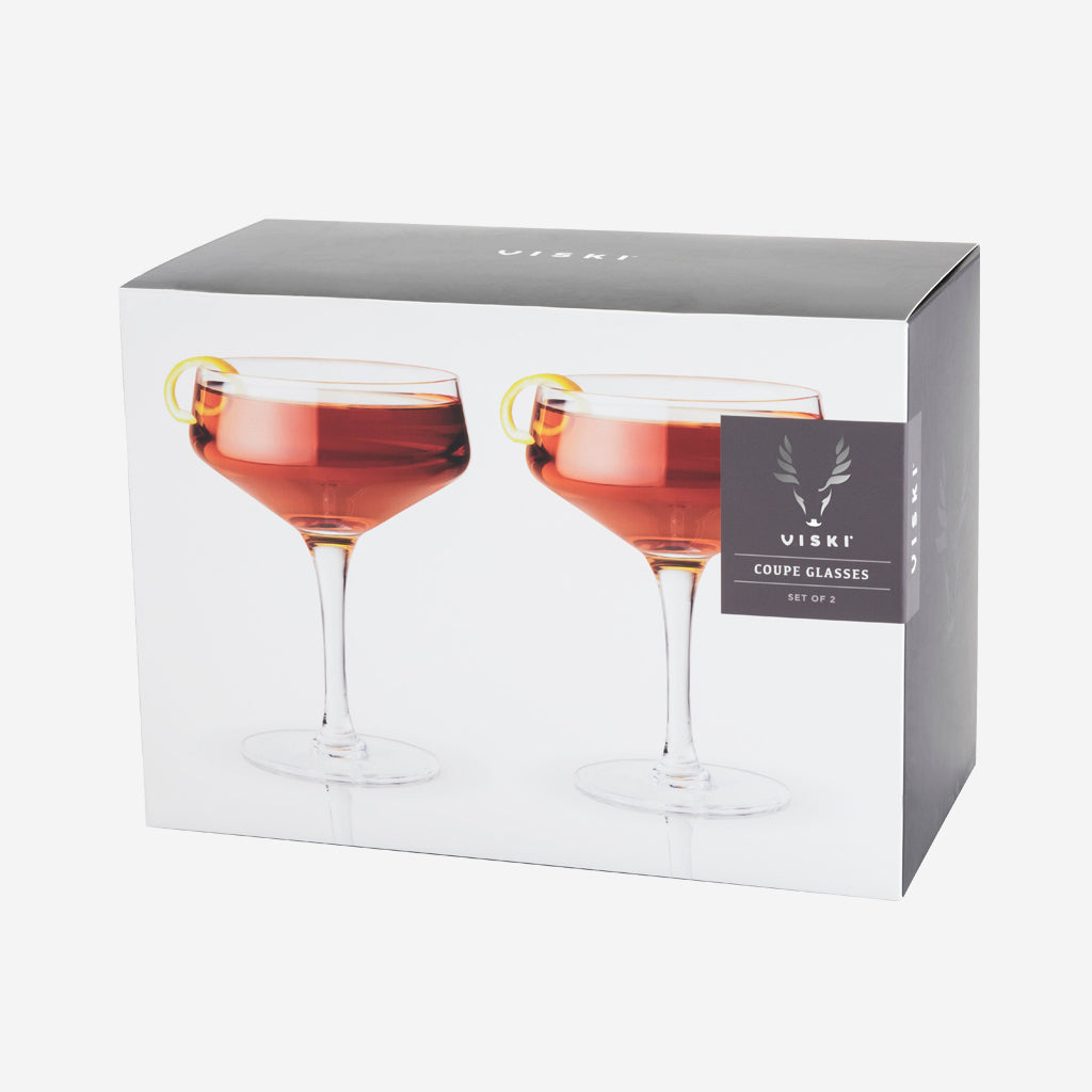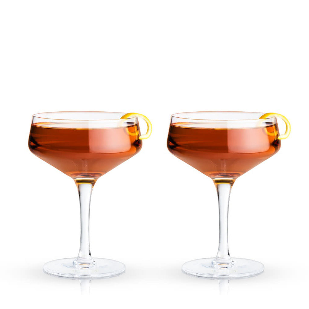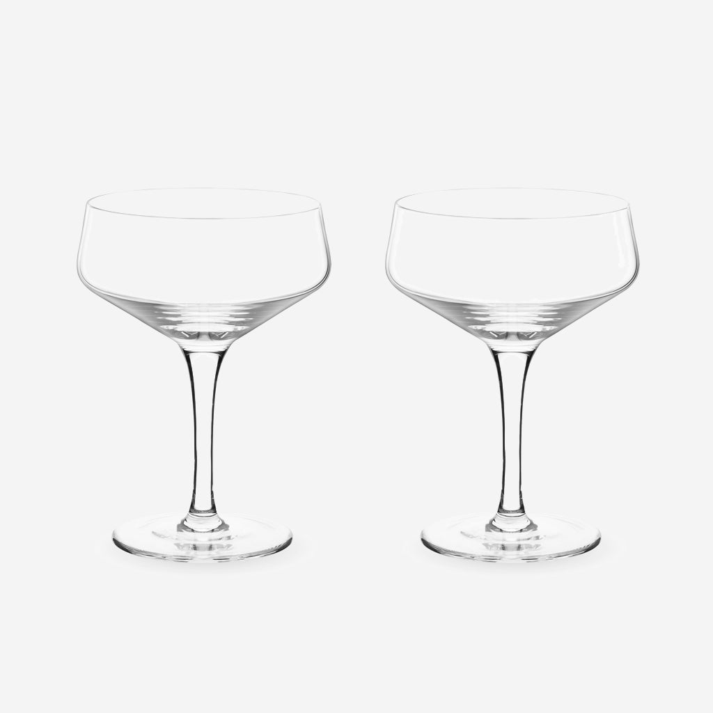 Sleek, modern angles give this cocktail coupe set a contemporary update. What better accompaniment to a frosty classic cocktail served up on a hot summer evening?
