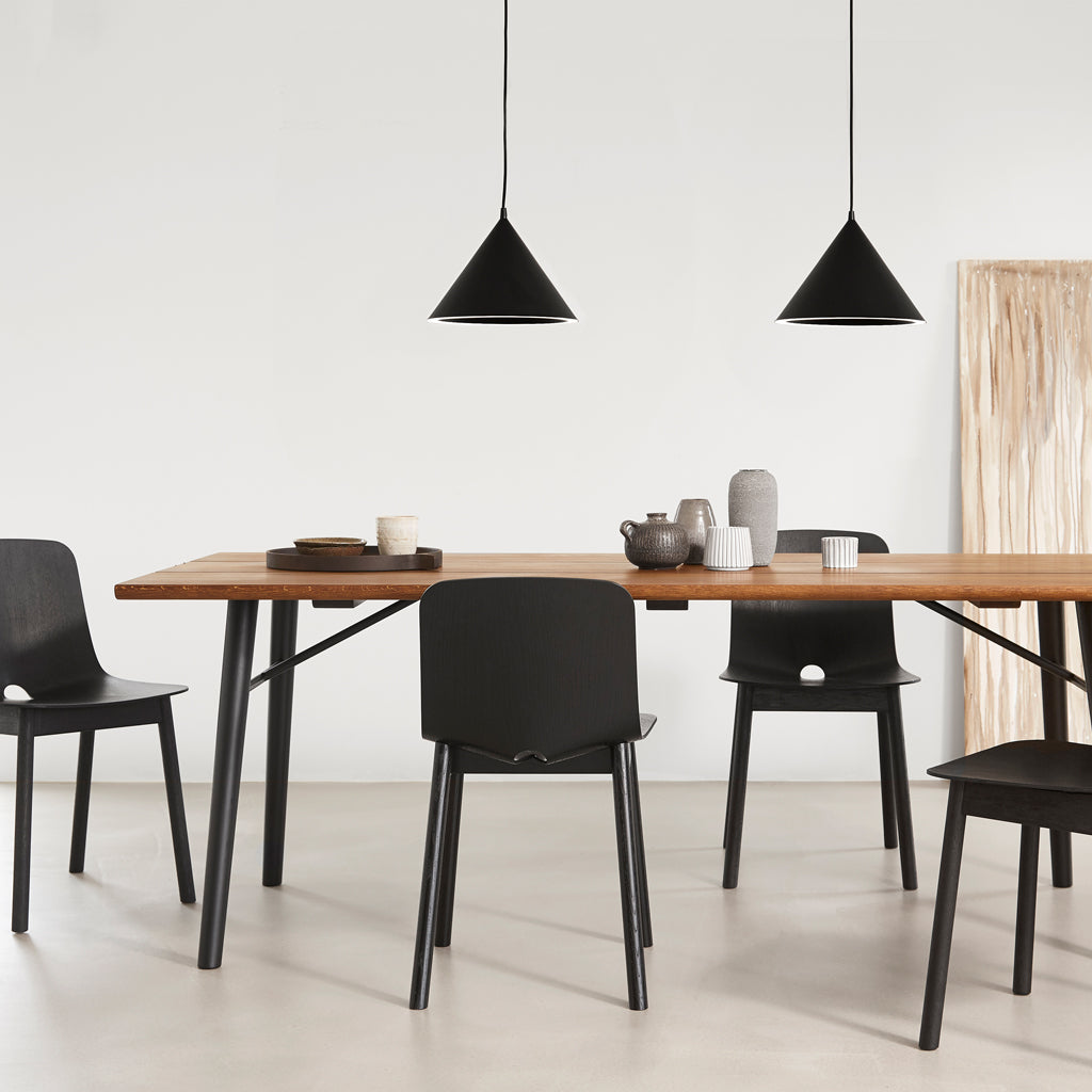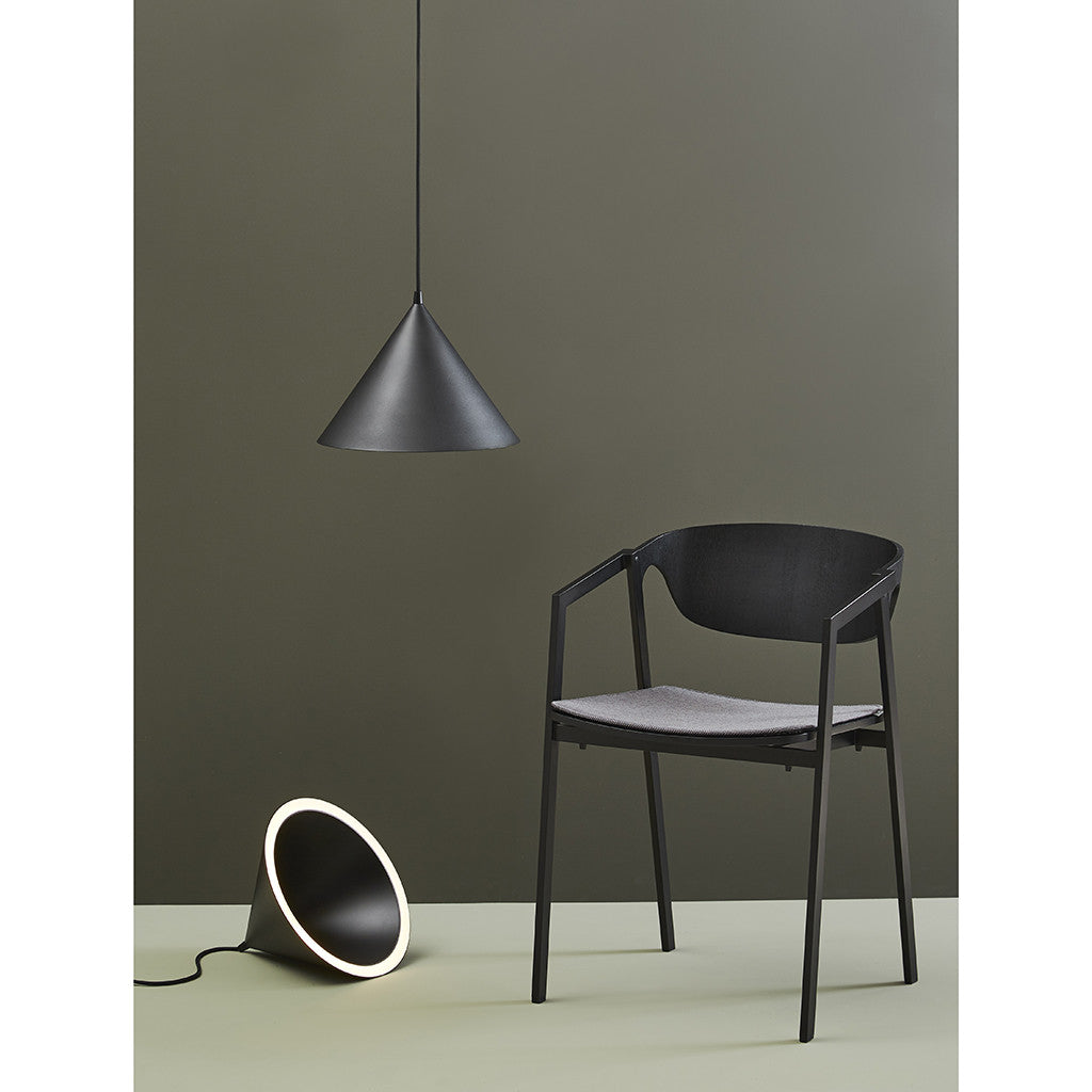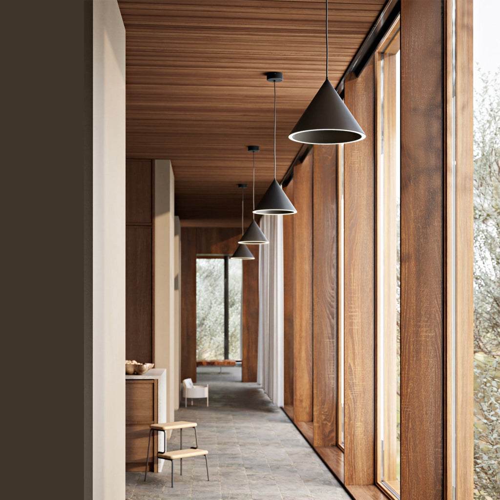 The Annular pendant is a modern interpretation of the classic cone pendant. It pairs two primary forms; a conical shade paired with a perfect ring of light at the perimeter. Annular is a result of rethinking the light. The innovative use of led makes no bulb visible creating a clean expression. The cone is evocative of a classic pendant form while the ring-shaped light source is boldly graphic and resolutely contemporary.