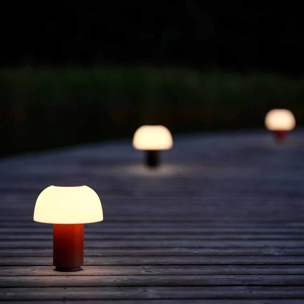 Harvest Moon is a portable lamp with a beautiful glow for the late summer transition from bright evenings to the darkness that falls earlier. The lamp has a cylindrical base and emits it soft glow through its upper half moon. With a light tap of the top, the lamp's brightness can be adjusted within 3 settings.