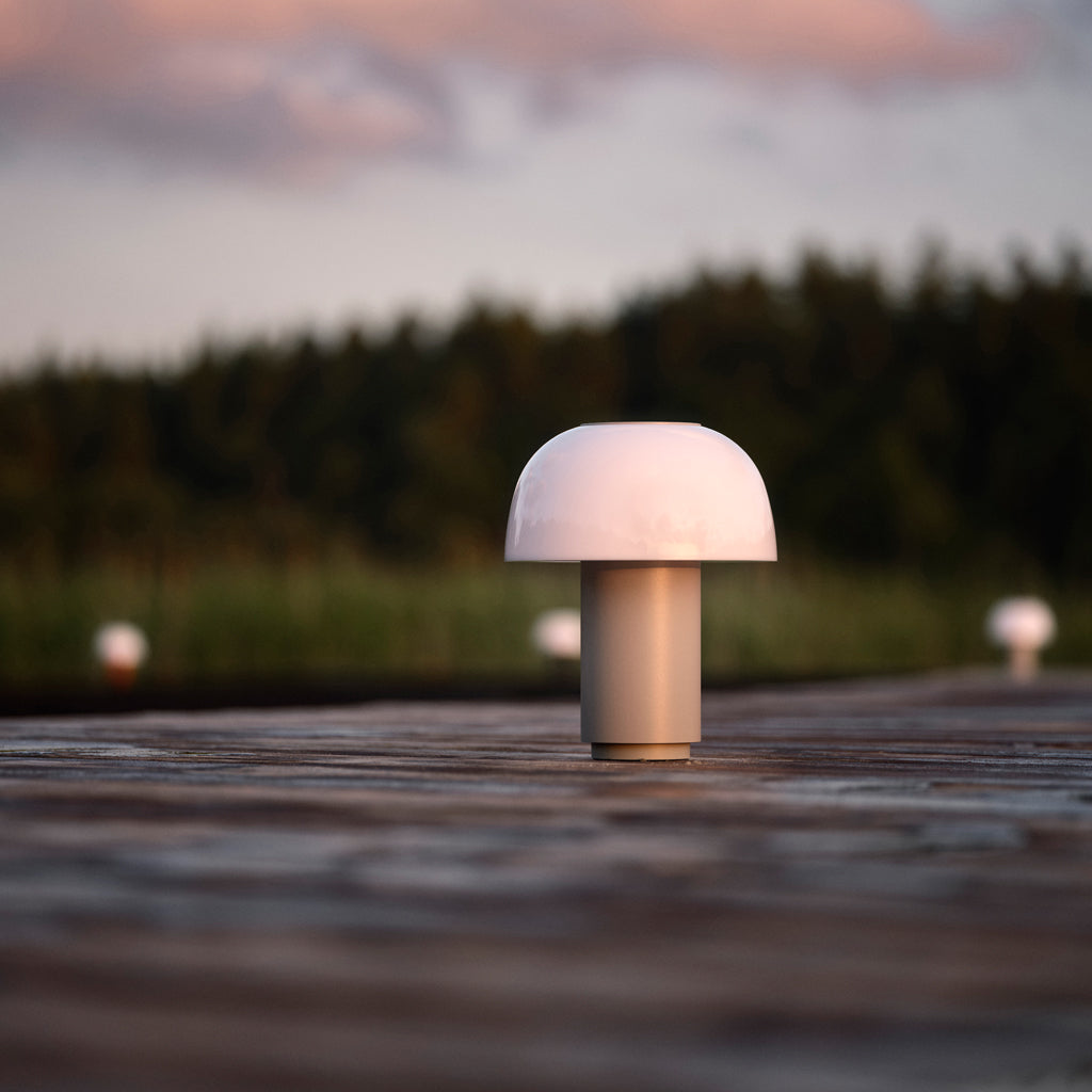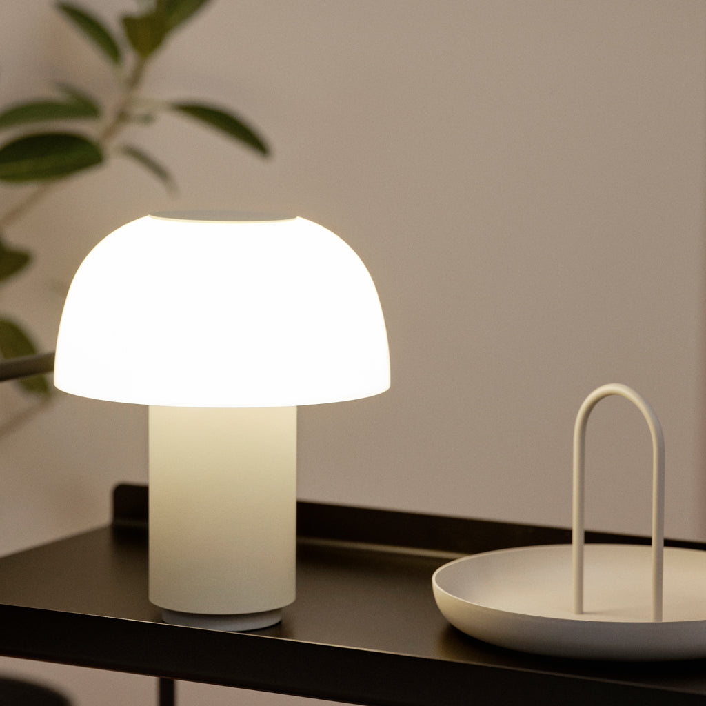 Harvest Moon is a portable lamp with a beautiful glow for the late summer transition from bright evenings to the darkness that falls earlier. The lamp has a cylindrical base and emits it soft glow through its upper half moon. With a light tap of the top, the lamp's brightness can be adjusted within 3 settings.