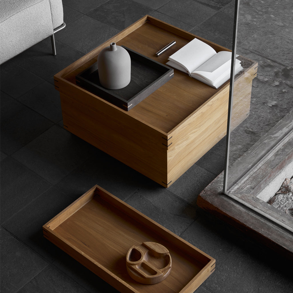 Inspired by the Japanese design tradition and the incense boxes of the Edo era, Kristina Dam Studio has envisioned a Scandinavian take on the versatile Japanese tray table. Handcrafted in dark oiled oak.