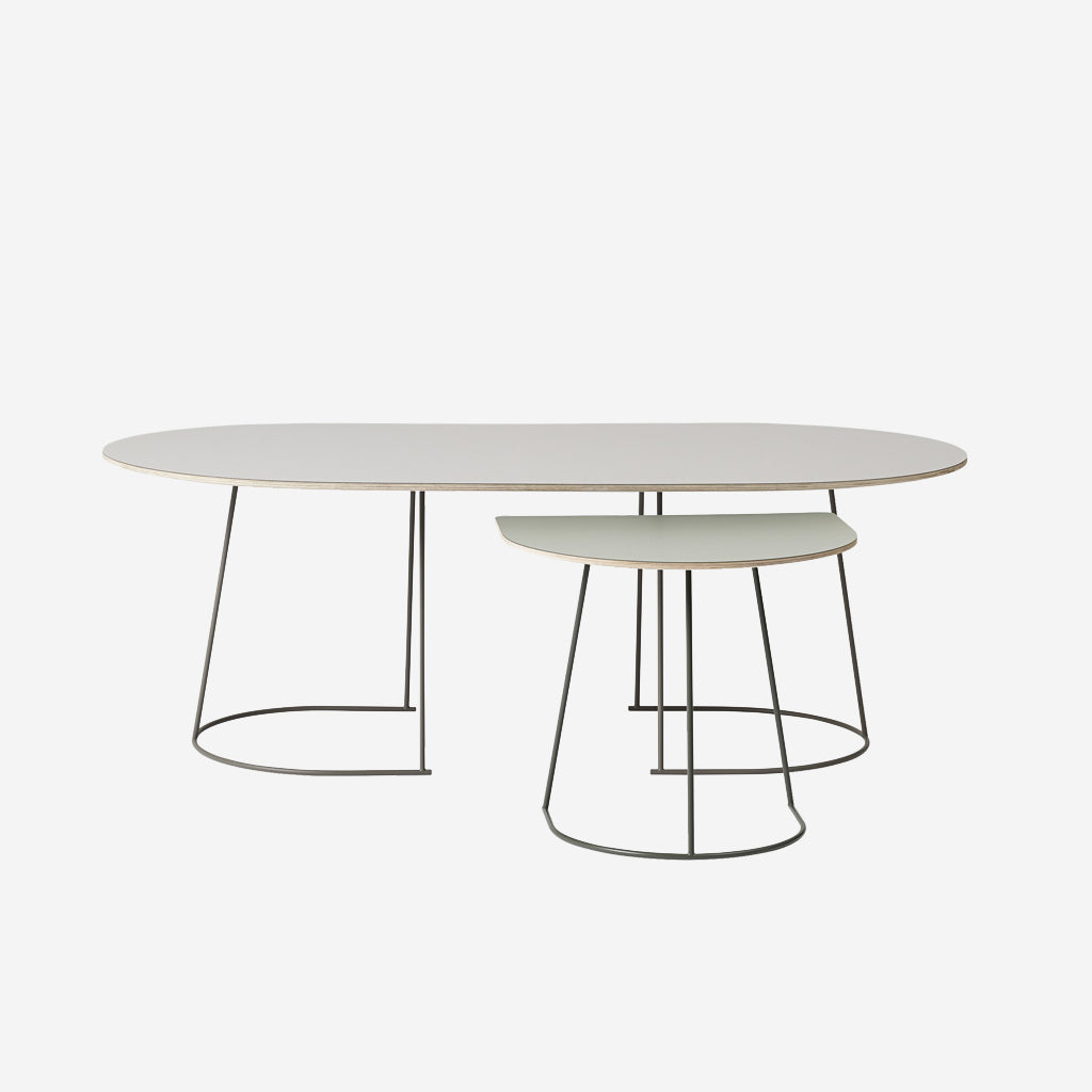 The Airy Coffee Table is designed with a light and airy expression through its clean lines and the table top almost floating above its thin steel frame. Available in three sizes alongside a half-side version, the Airy Coffee Table can serve a range of functions in a multitude of spaces with its playful yet quiet personality complementing any setting.