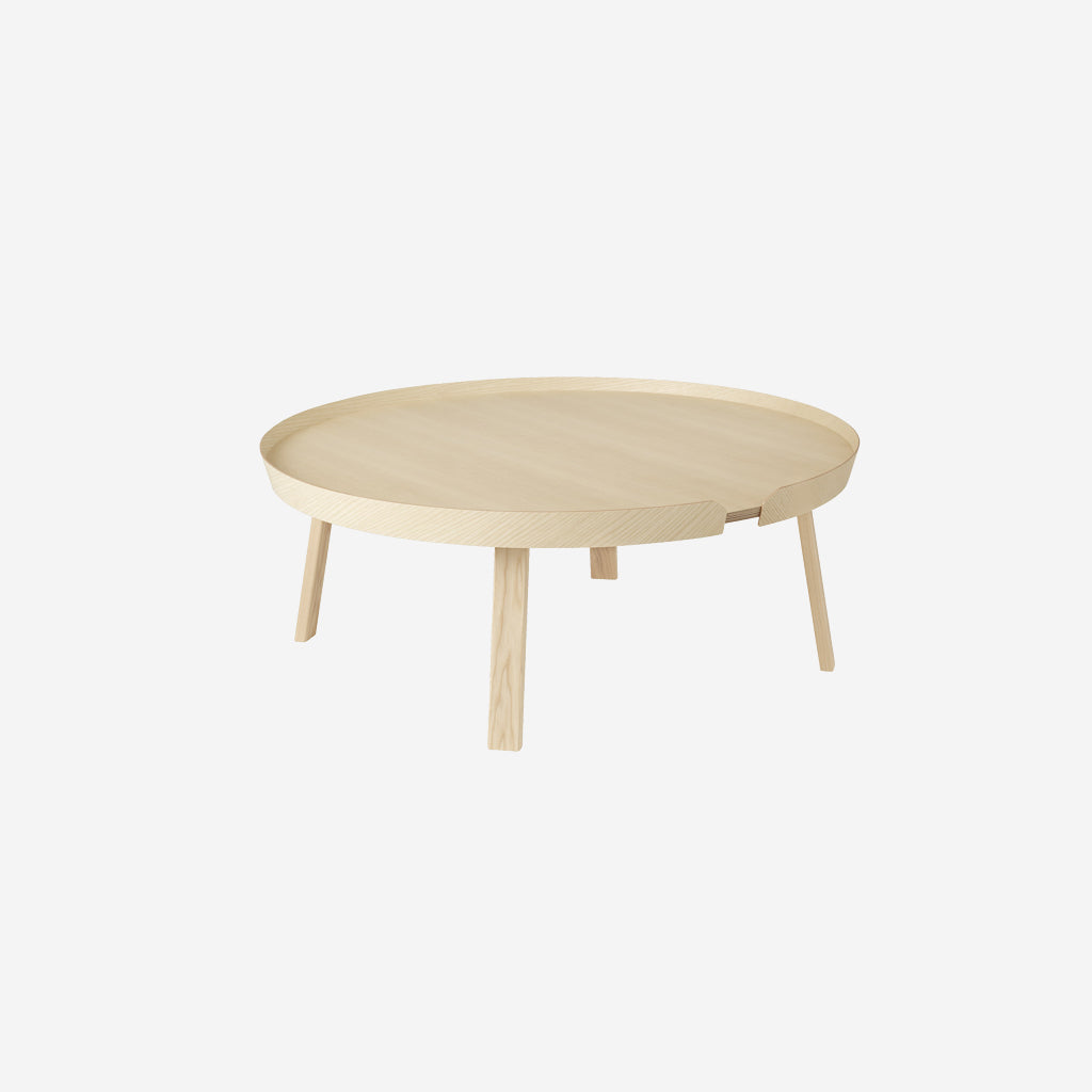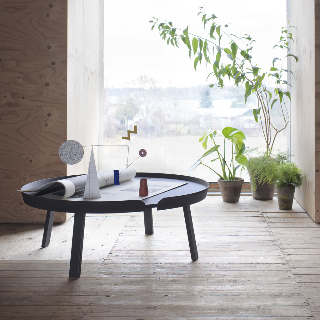 The Around Coffee Table brings a new perspective to its typology through the characterful wooden veneer frame that runs along the edge of the table, echoing the ideas of Scandinavian design. The wood is carefully cut, bent, blued and polished to create a unique table. The strong lacquered surface protects the table from the wear and tear or everyday use.