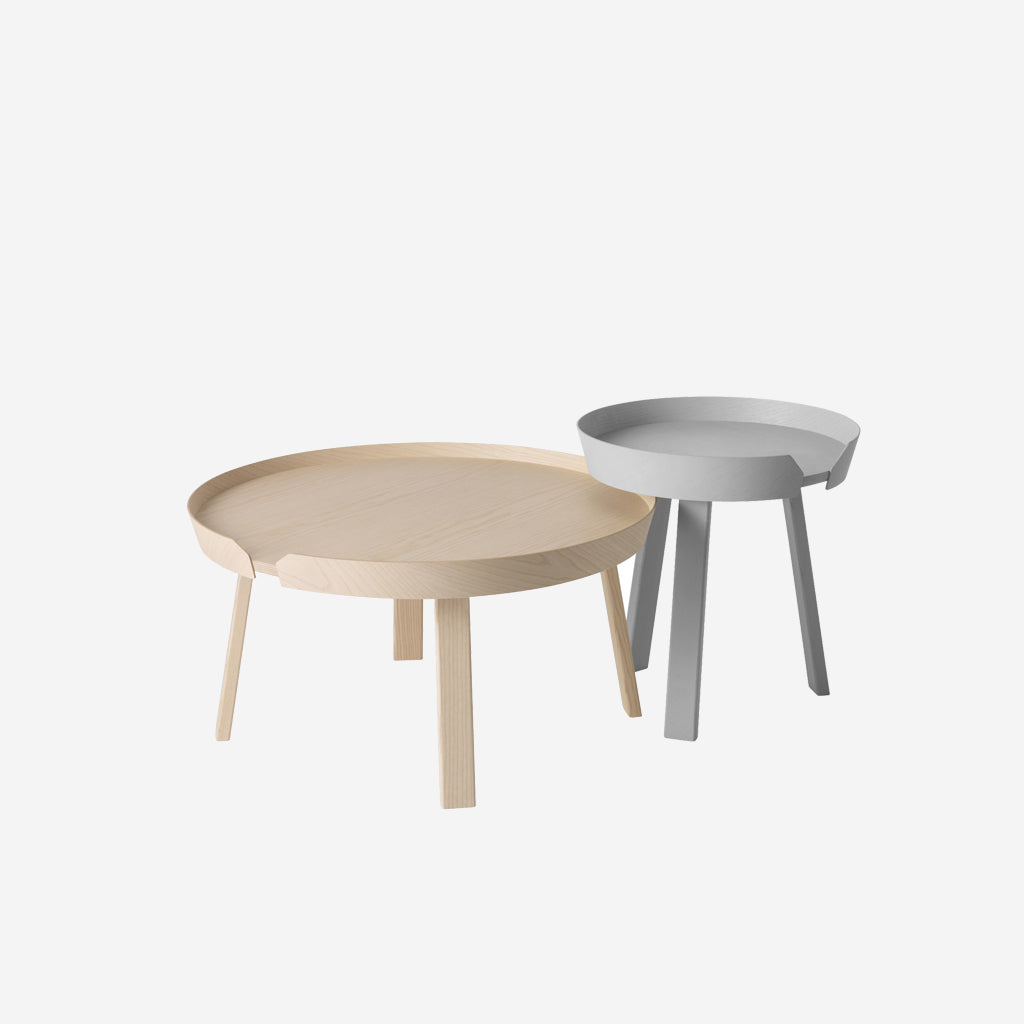 The Around Coffee Table brings a new perspective to its typology through the characterful wooden veneer frame that runs along the edge of the table, echoing the ideas of Scandinavian design. The wood is carefully cut, bent, blued and polished to create a unique table. The strong lacquered surface protects the table from the wear and tear or everyday use.