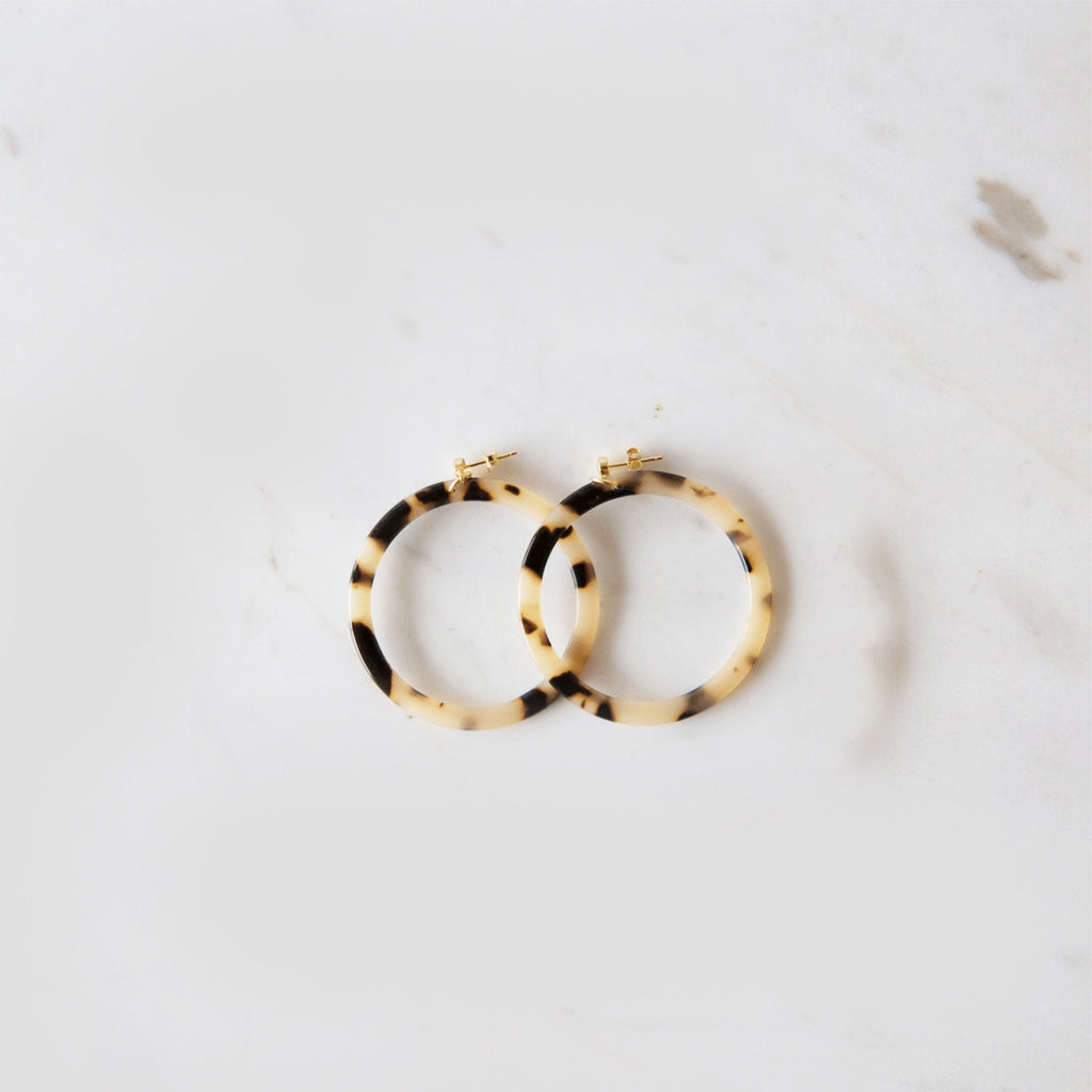 Materials : Acetate Hoop + Sterling Silver with 14 karat gold plating post & back