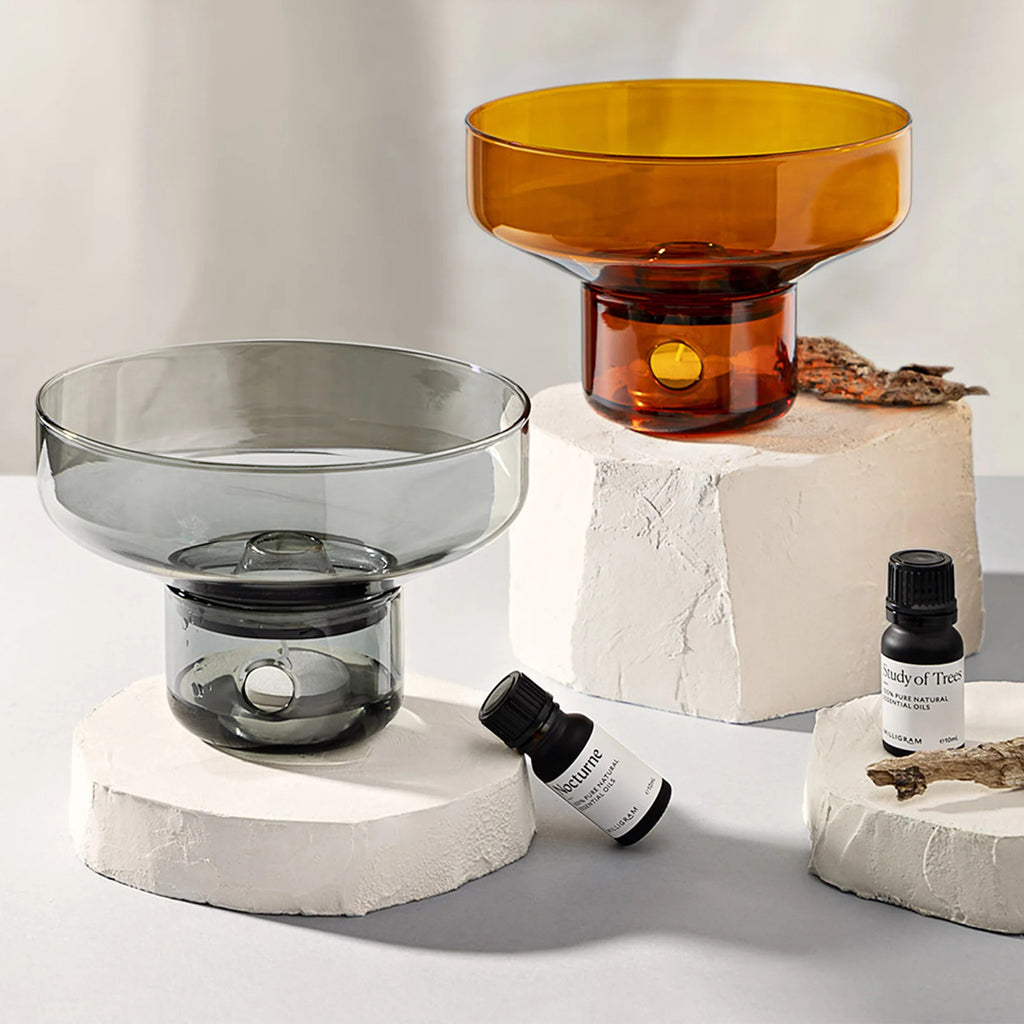 Formed from precision-crafted borosilicate glass, Studio Milligram's elegant Glass Oil Burner is a gorgeous piece of functional art to delight your senses. Lit from within, the soft glow of a tea light candle gently illuminates the space around it, bringing a warmth that complements the aromas of essential oils as they spread through your space.