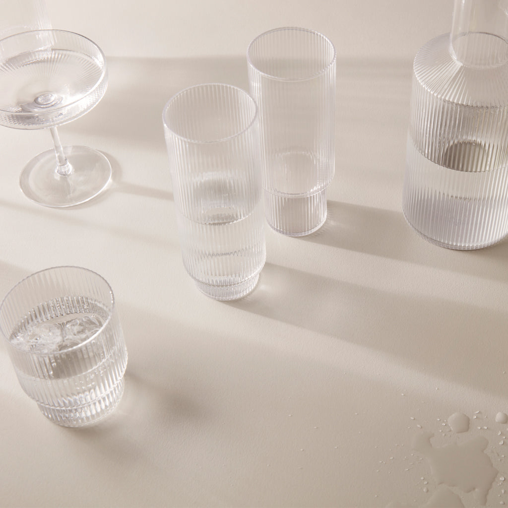 Ferm Living’s Ripple series are a skillful and powerful expression of sophistication. Detailed with thin vivid vertical ripples, the Ferm Living ripple carafe makes a beautiful water jug, pitcher or wine carafe to suit any interior setting.
