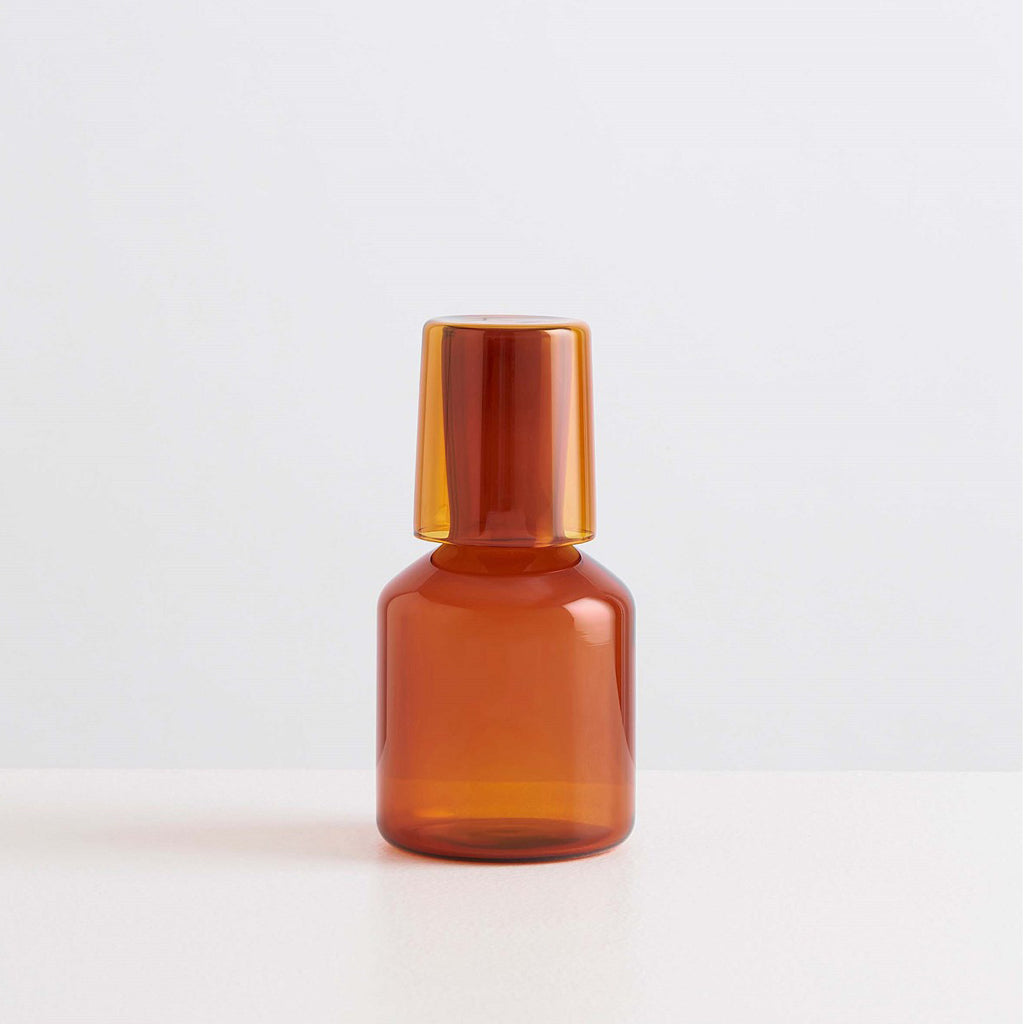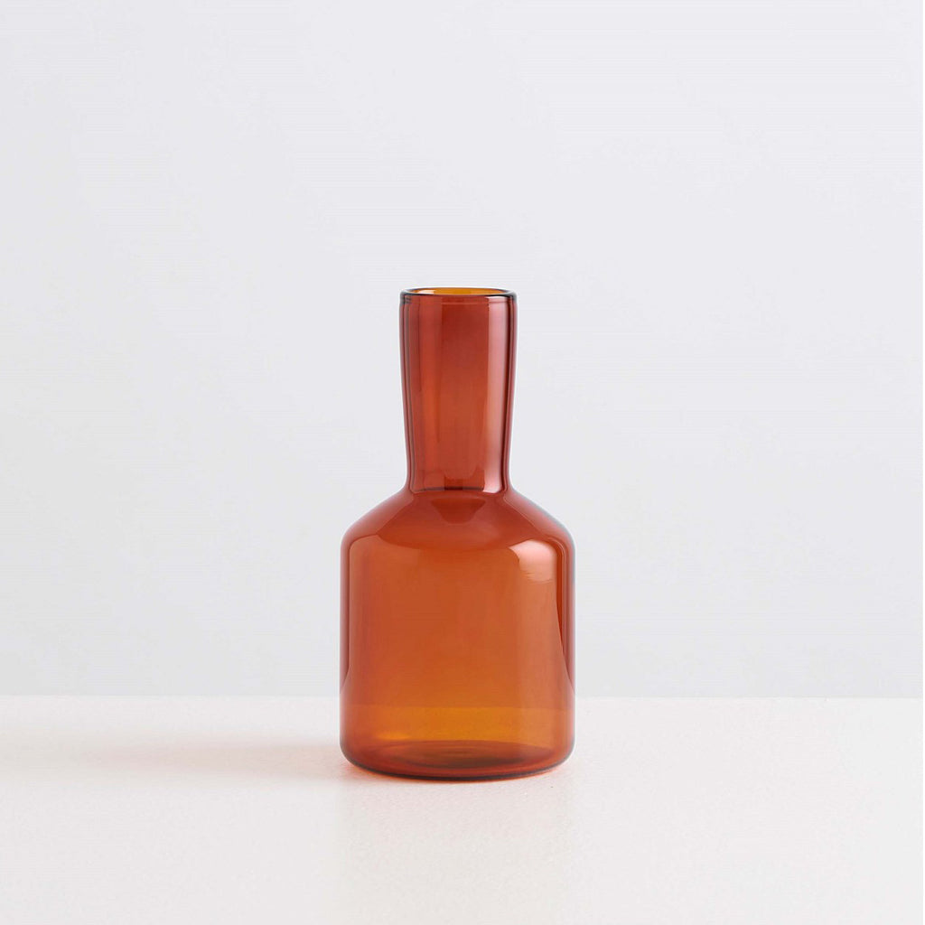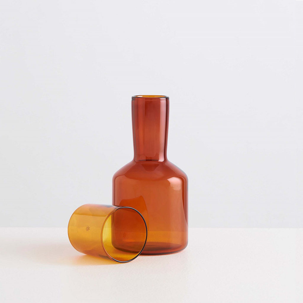 The J’ai Soif carafe and tumbler are individually mouth blown in Amber coloured borosilicate glass. Each piece is heat resistant and dishwasher safe*. This water carafe set is available in a range of colours and adds extraordinary pleasure to the simple act of drinking water.