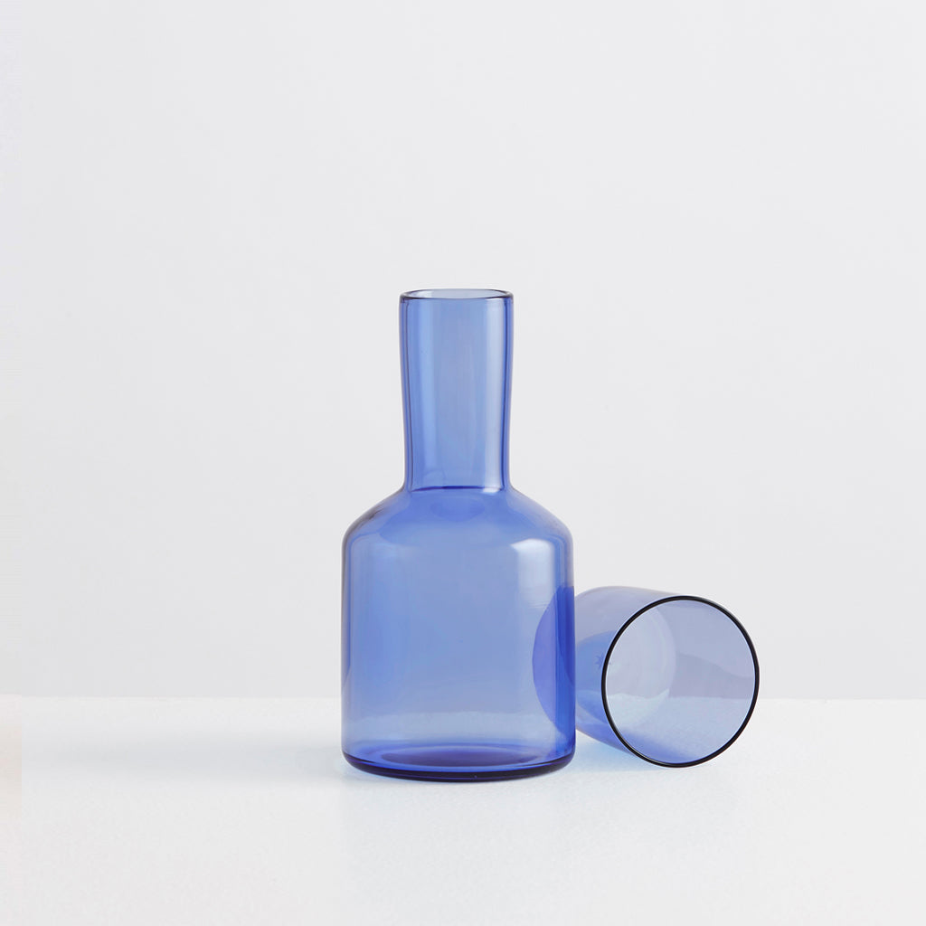 The J’ai Soif carafe and tumbler are individually mouth blown in Azure Blue coloured borosilicate glass. Each piece is heat resistant and dishwasher safe*. This water carafe set is available in a range of colours and adds extraordinary pleasure to the simple act of drinking water.