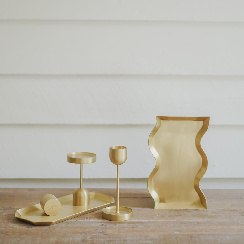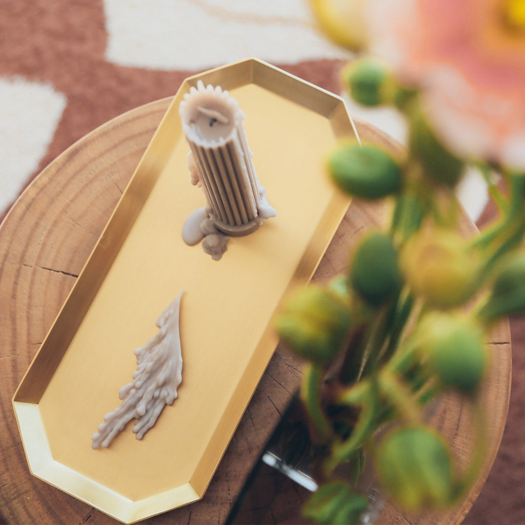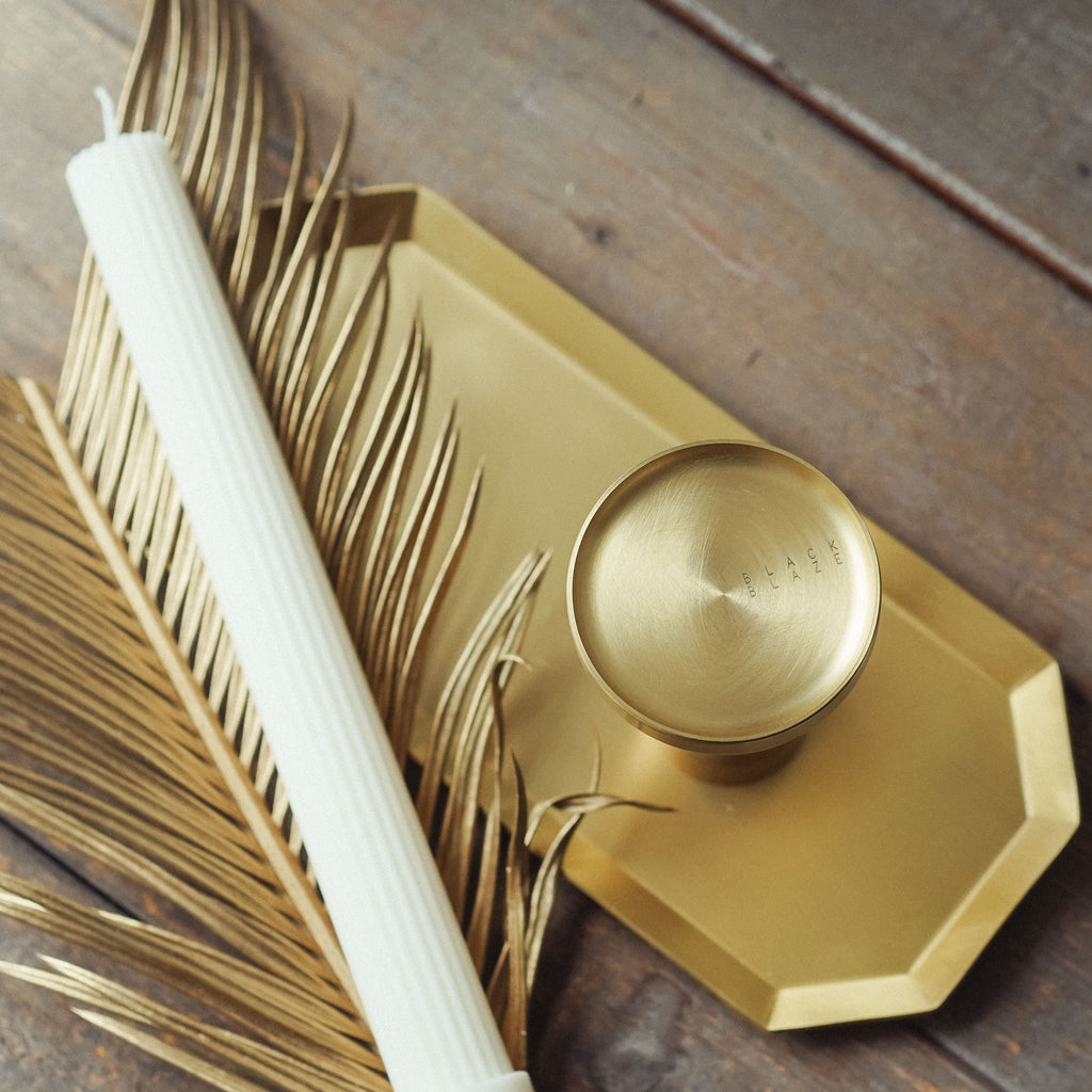A perfect addition to our column candle collection. This brass candle tray is designed to display your pillar candle and take the candle drips. Also can be a great table organizer.