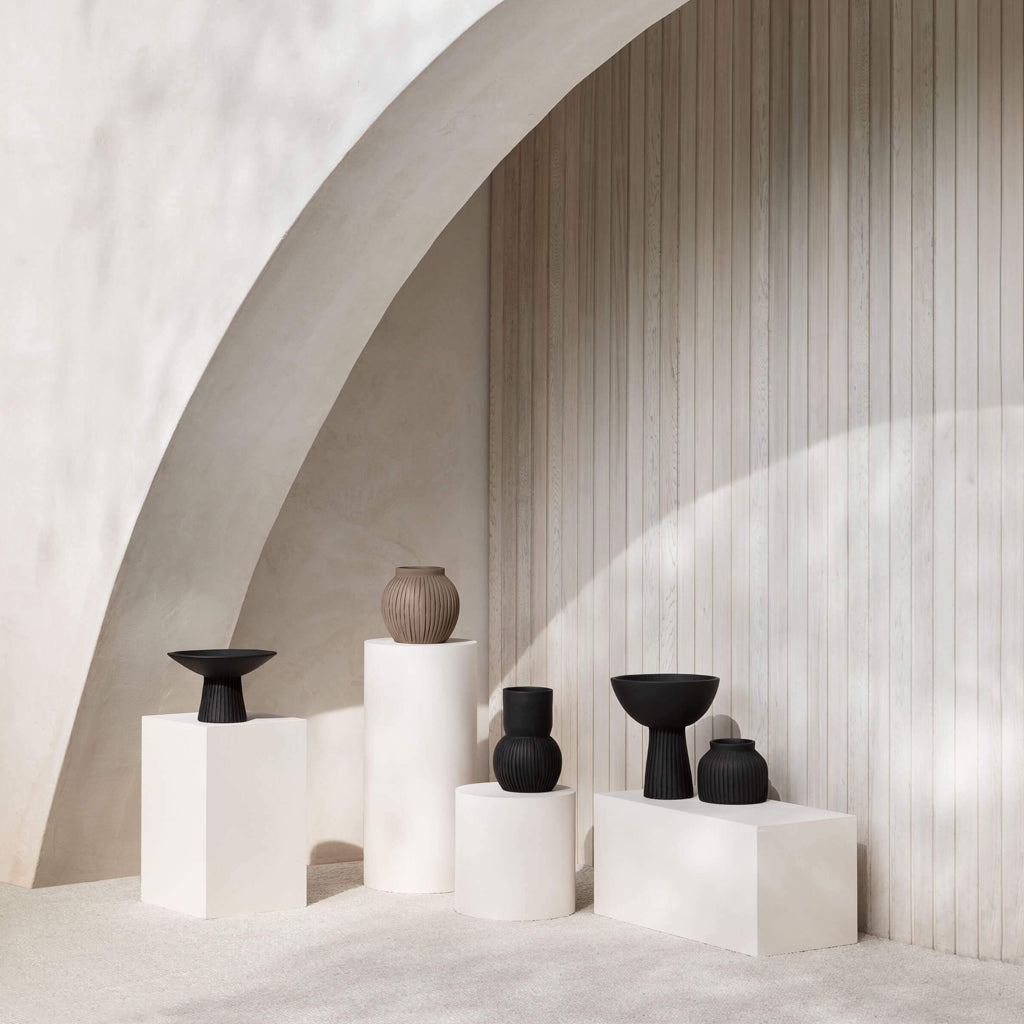 L&M Home's vessel collection champions traditional craftsmanship and raw characteristics of the handmade. Consisting of five stoneware items in three different colours, sculptural silhouettes combine with fluid lines for an organic feel that ensures no two items are the same.