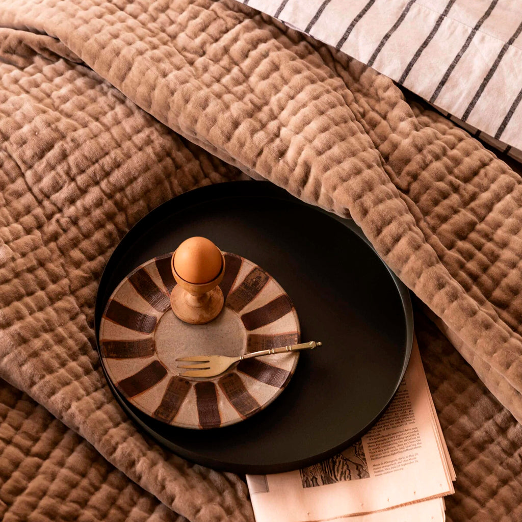 Textural and bold, the Mona range is a unique addition to any home. Expanding our Mona collection with the addition of a sleek round tray, this minimalistic metal design fits decoratively anywhere in your home – use it for styling objects, to organise your cosmetics, or to serve up a freshly made cocktail.