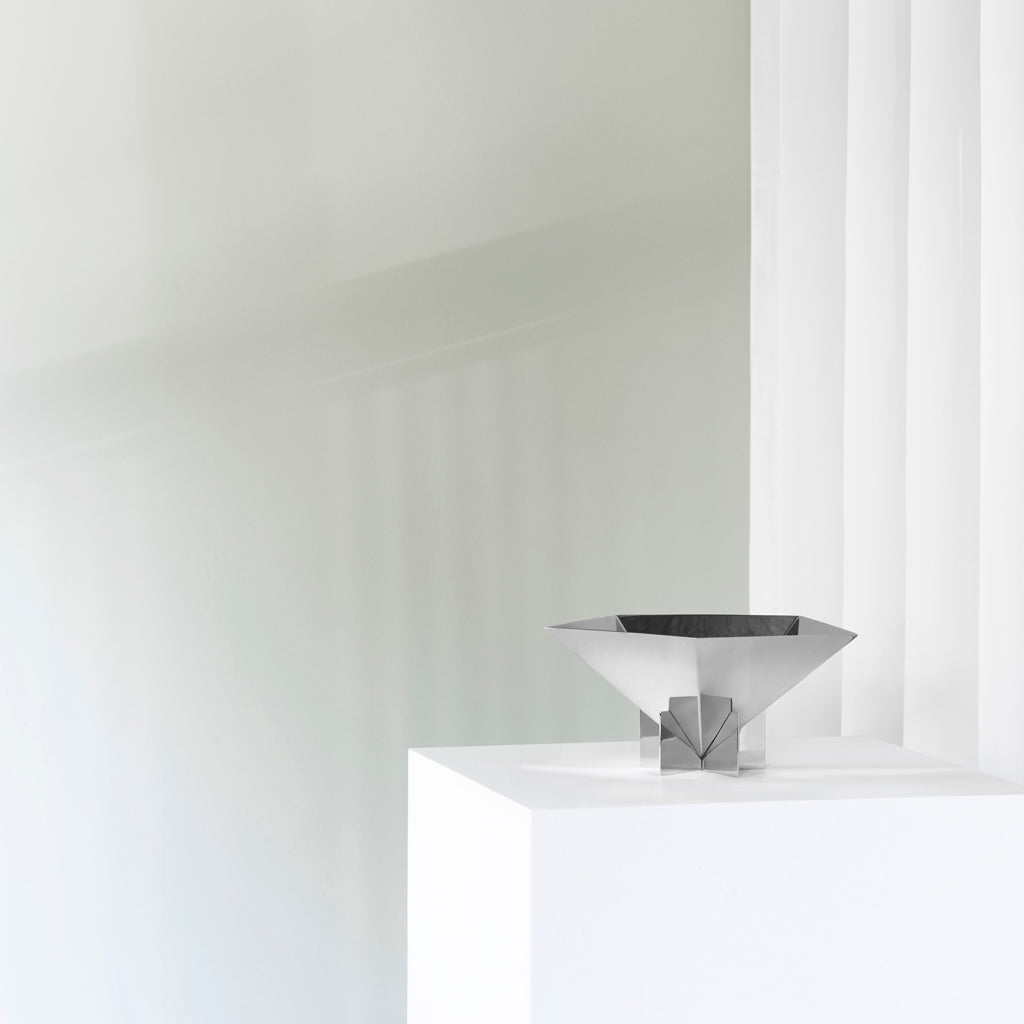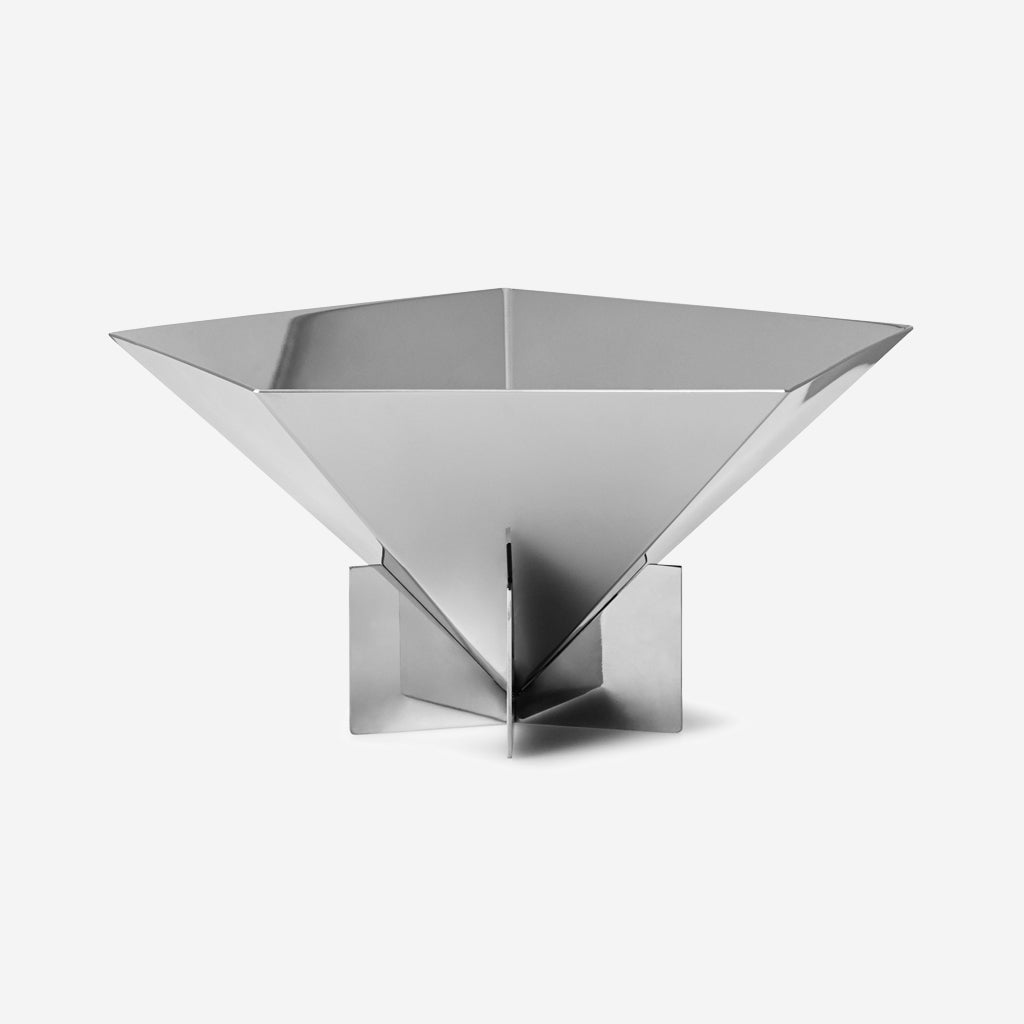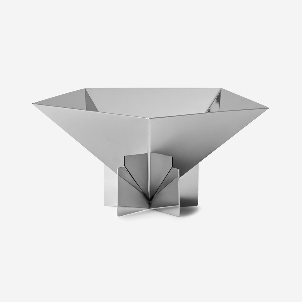 Hand-crafted from mirror-polished stainless steel, Fem Bowl presents a decorative, geometric design. Named after the Danish word for the number five, Fem features five triangular pieces that constitute the bowl itself, which rests on a five-star base formed of five pieces of steel weld together by hand. Whether used as a decorative element or for its functional purpose, Fem Bowl is sure to enhance any interior.