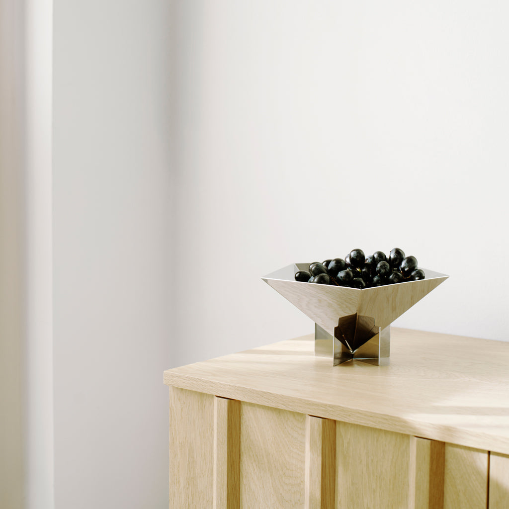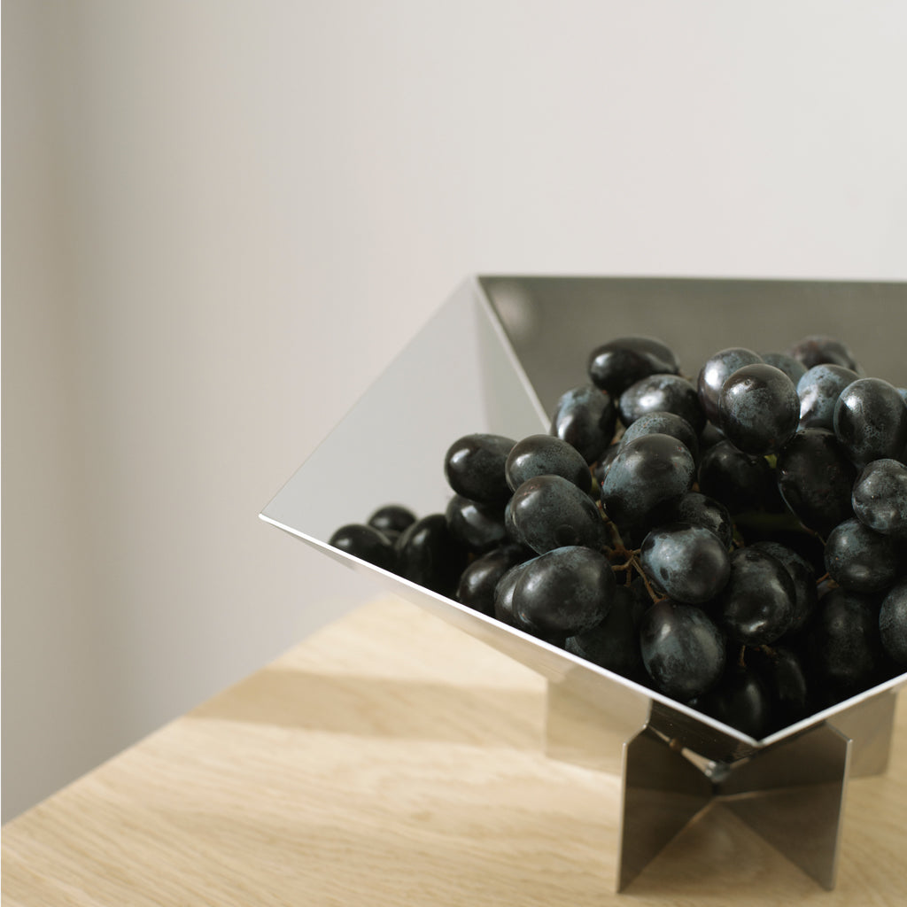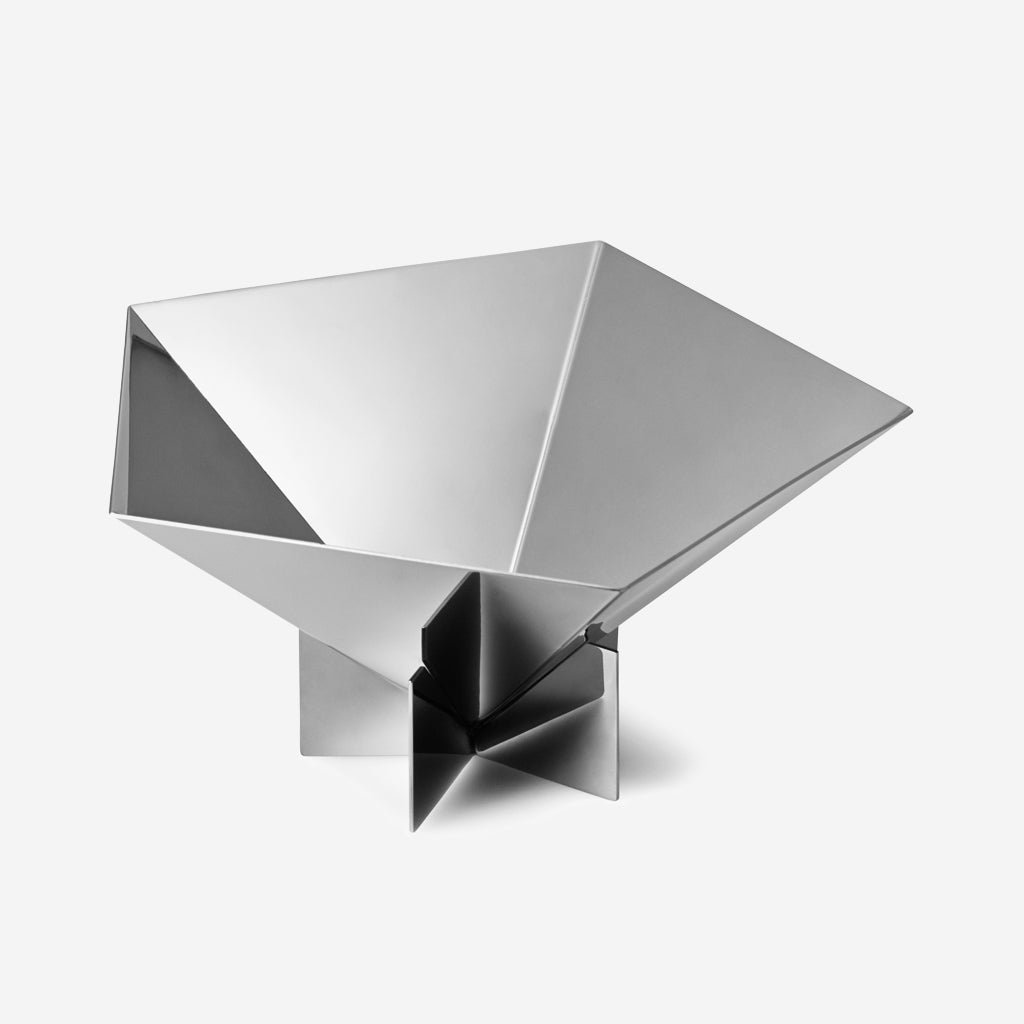 Hand-crafted from mirror-polished stainless steel, Fem Bowl presents a decorative, geometric design. Named after the Danish word for the number five, Fem features five triangular pieces that constitute the bowl itself, which rests on a five-star base formed of five pieces of steel weld together by hand. Whether used as a decorative element or for its functional purpose, Fem Bowl is sure to enhance any interior.