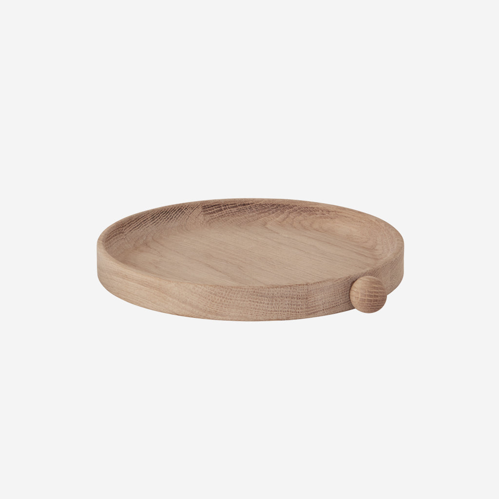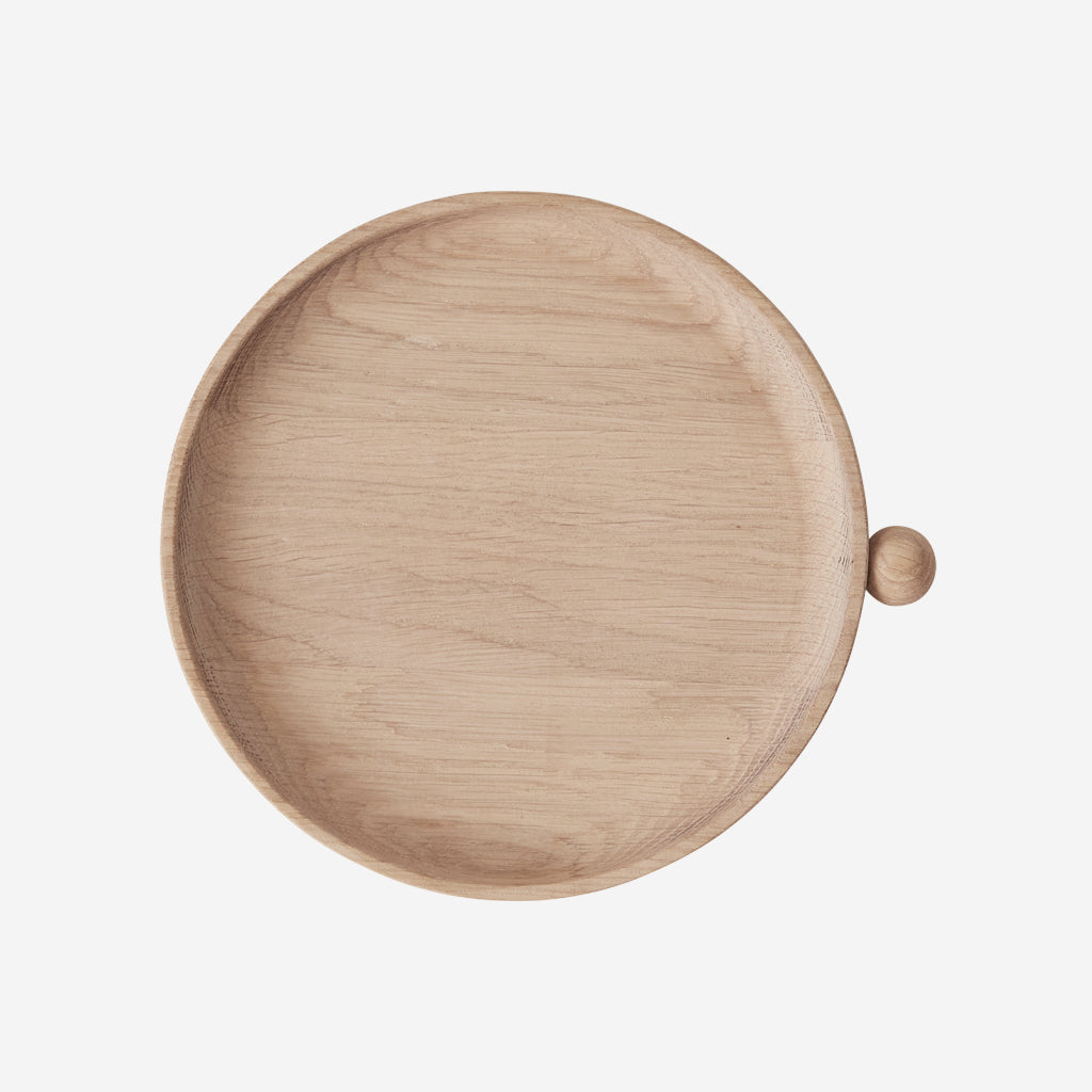 The Inka series is characterized by its simple design and clean lines which are especially reflected in this round tray. The round Inka Wood Tray is made of oak and the unique and natural structure will add warmth and soul to the home. The tray is set on round feet, which lifts the tray and give it an elegant expression. The tray is available in more sizes and comes in dark wood as well.
